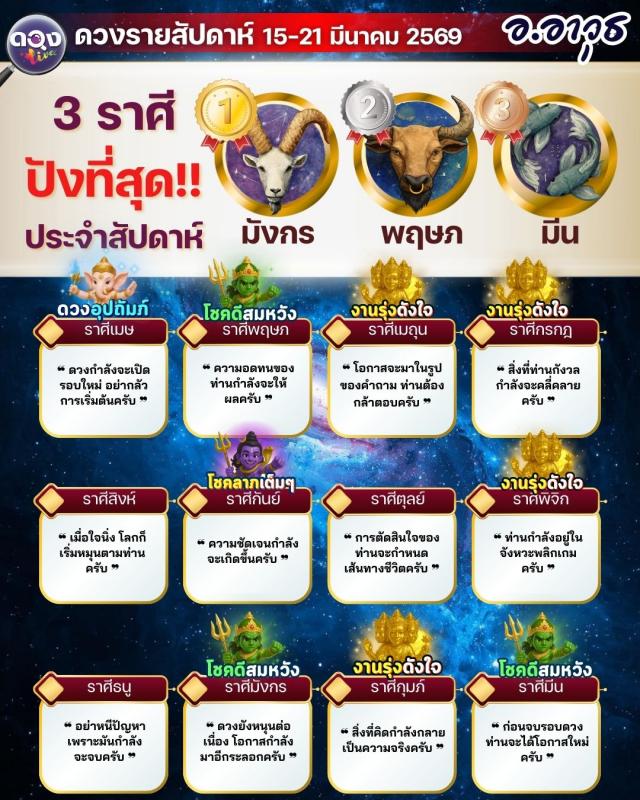 ดวงรายสัปดาห์ 15 – 21 มีนาคม 2569 โดย อ.อาวุธ จับยามสามตา – ผู้ก่อตั้งดวง Live