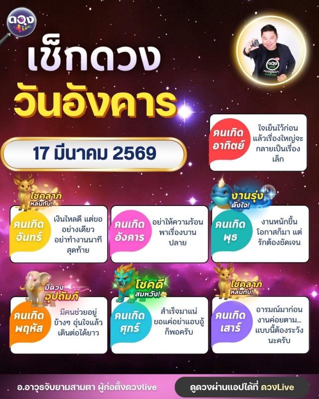 ดวงรายวันประจำวันอังคารที่ 17 มีนาคม 2569 โดย อ.อาวุธจับยามสามตา – ผู้ก่อตั้งดวง Live
