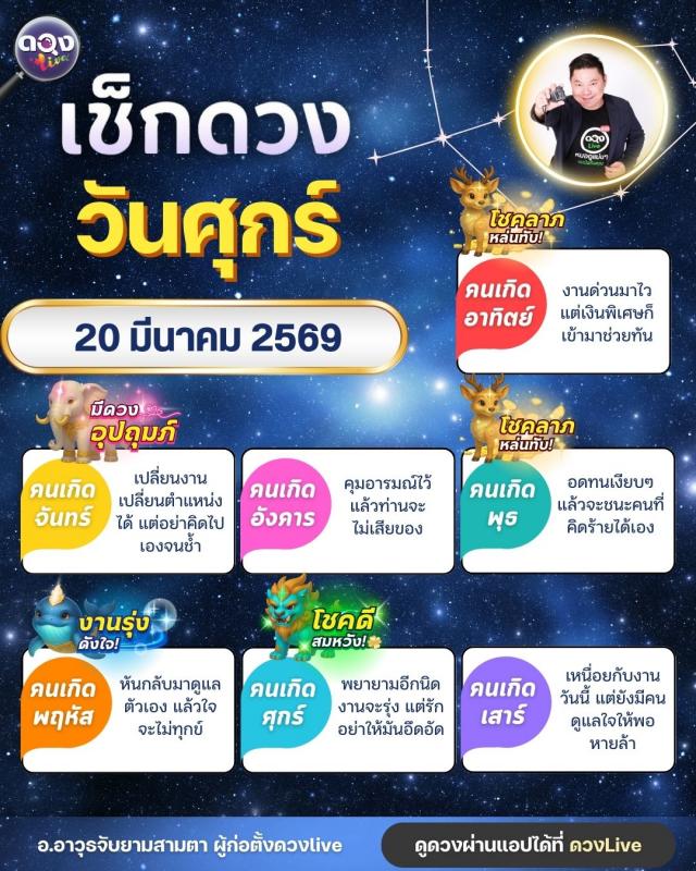 ดวงรายวันประจำวันศุกร์ที่ 20 มีนาคม 2569 โดย อ.อาวุธจับยามสามตา – ผู้ก่อตั้งดวง Live