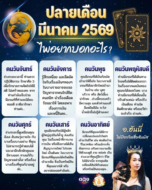 ปลายเดือนมีนาคม 2569 ไพ่อยากบอกอะไร?ทำนายโดย: อาจารย์ฮันนี่ไพ่ป๊อกจิตสื่อสัมผัส