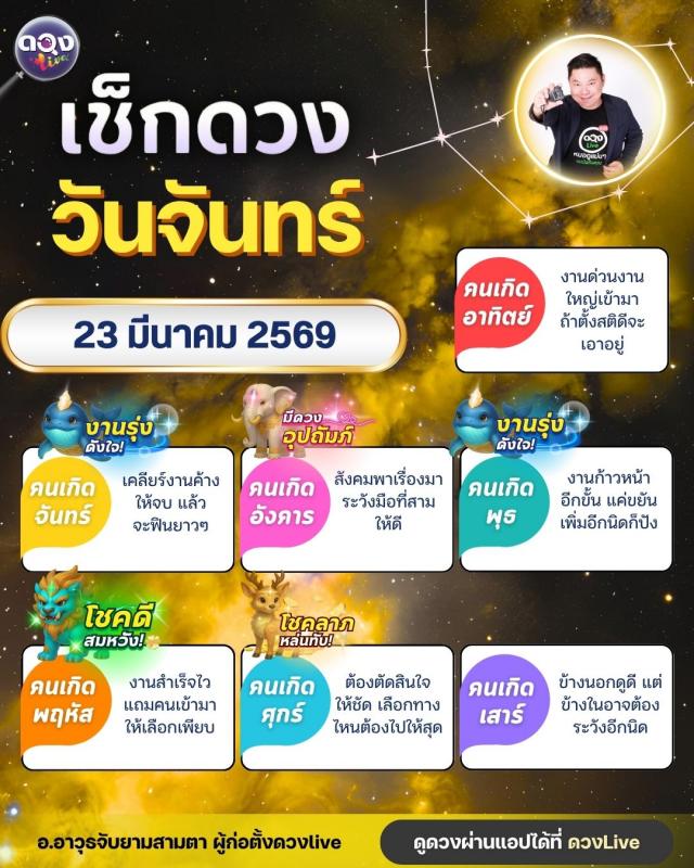 ดวงรายวันประจำวันจันทร์ที่ 23 มีนาคม 2569 โดย อ.อาวุธจับยามสามตา – ผู้ก่อตั้งดวง Live