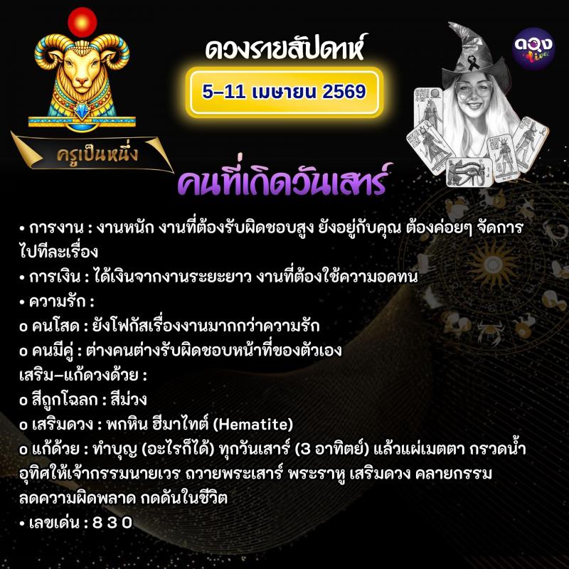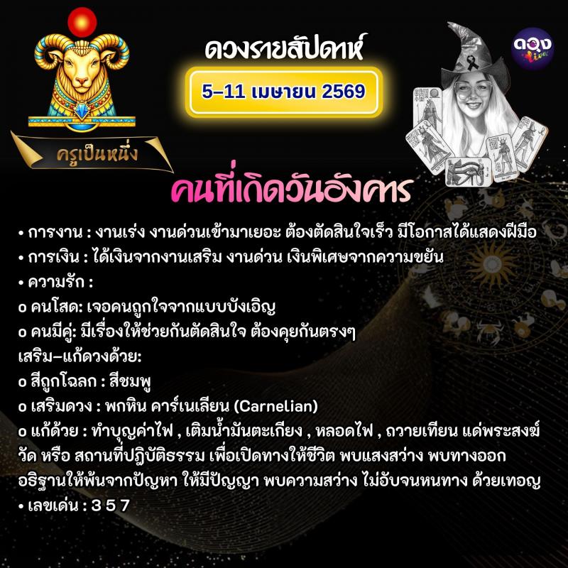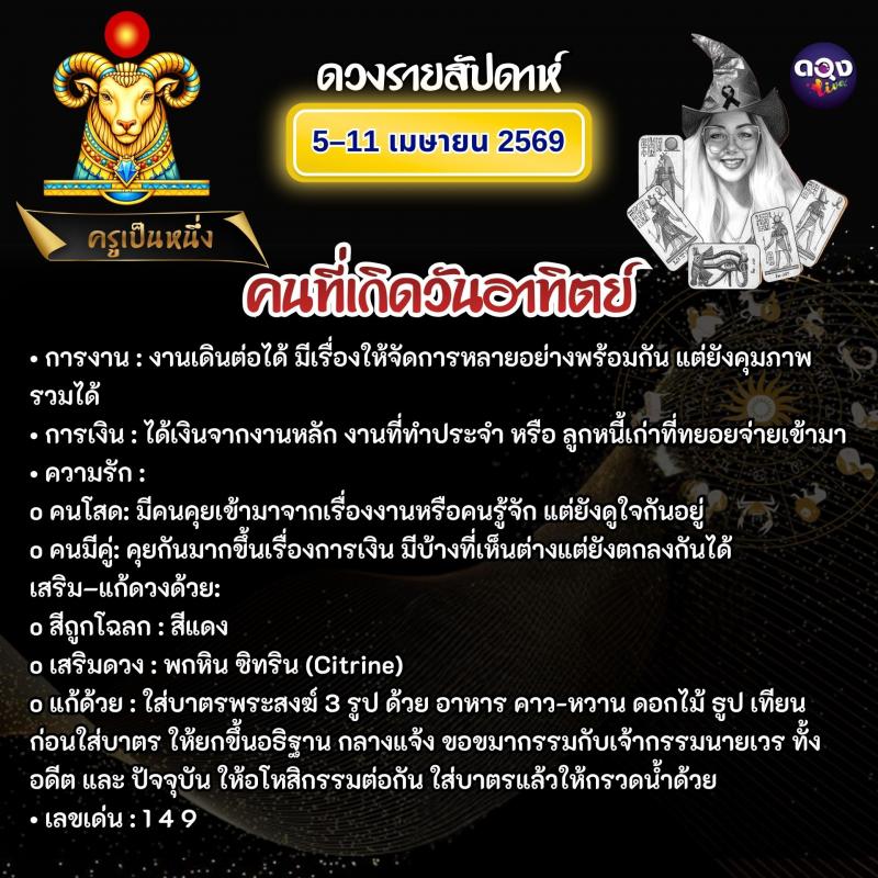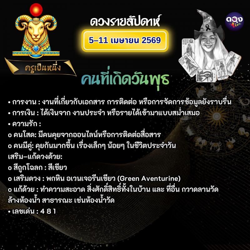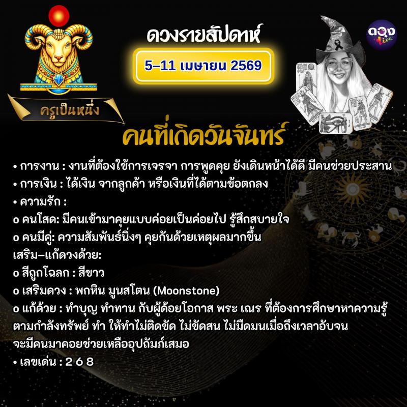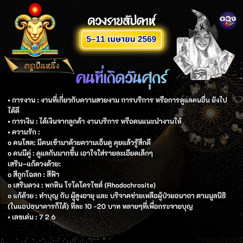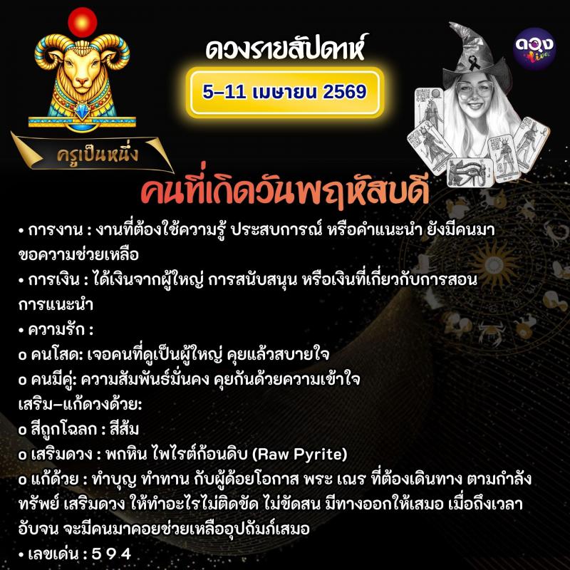 ดวงรายสัปดาห์ ประจำวันที่ 5–11 เมษายน 2569 กับ "ครูเป็นหนึ่ง"