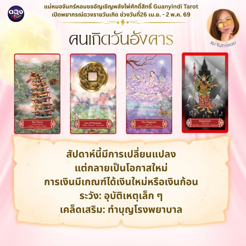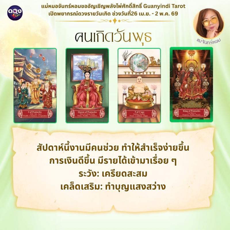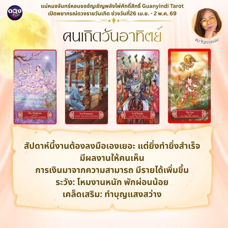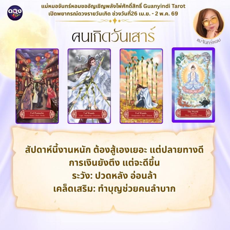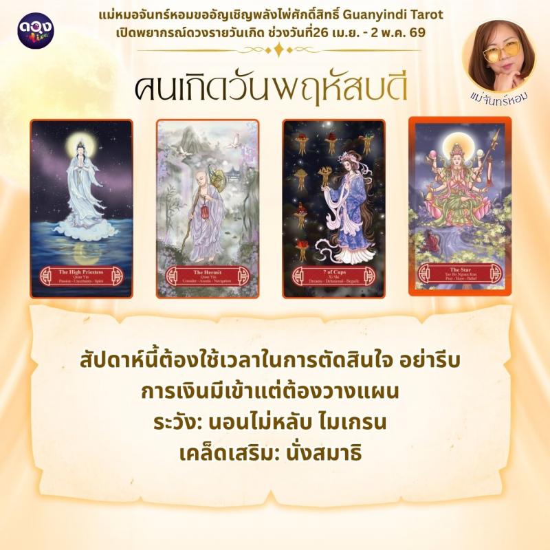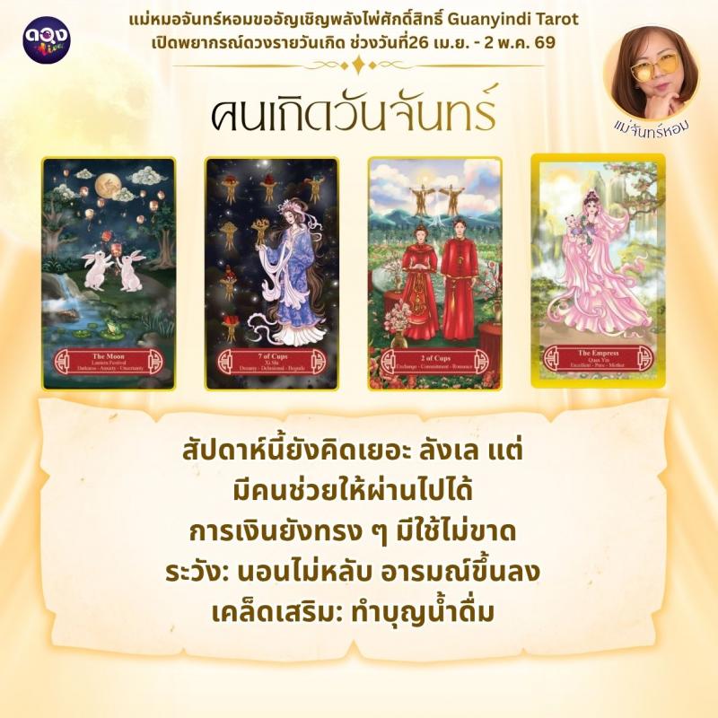 เปิดพยากรณ์ดวงรายวันเกิด ช่วงวันที่ 26 เมษายน - 2 พฤษภาคม 2569 แม่หมอจันทร์หอมขออัญเชิญพลังไพ่ศักดิ์สิทธิ์ Guanyindi Tarot