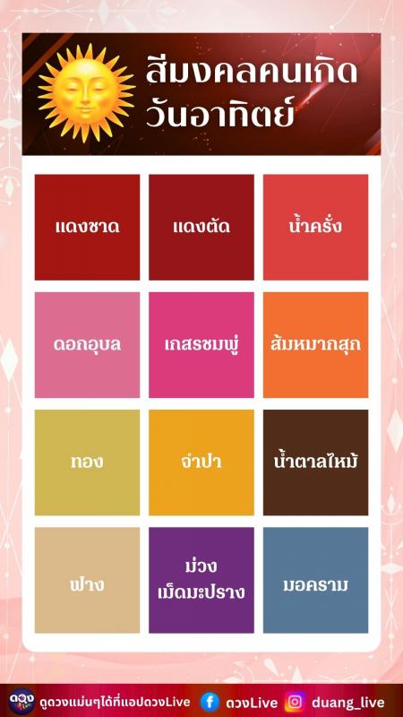 สีมงคลคนเกิดวันอาทิตย์