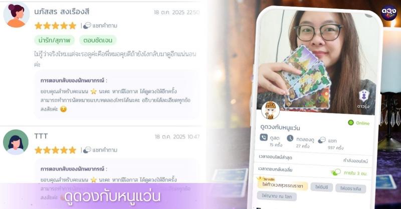 แม่หมอพิ้งกี้ หมอดูสายอบอุ่นที่ใครได้คุยด้วยต่างบอกว่าเหมือนเพื่อนที่เข้าใจสุดๆ อ่านไพ่ตรง ชัด และพูดด้วยความจริงใจ ไม่อ้อมค้อมแต่ให้กำลังใจได้ดีมาก ใครมีเรื่องความรักซับซ้อน การงาน การเงิน หรืออยากรู้แนวโน้มชีวิตช่วงนี้ แม่หมอช่วยชี้ทางให้ได้ค่ะ ไม่รับดูเรื่องความเป็นความตายและสุขภาพนะคะ