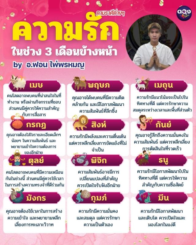 ดูดวงความรักในช่วง 3 เดือนข้างหน้าตามราศีต่างๆ by อ.ฟอน ไพ่พรหมญาณ