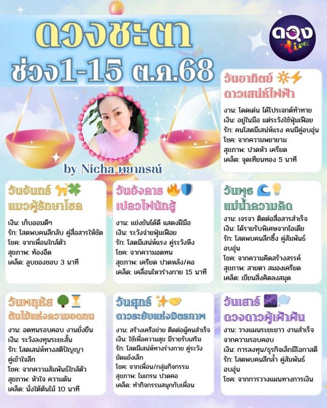 ดวงชะตาช่วง 1-15 ตุลาคม 68 คนเกิดวันทั้ง 7 by Nicha พยากรณ์