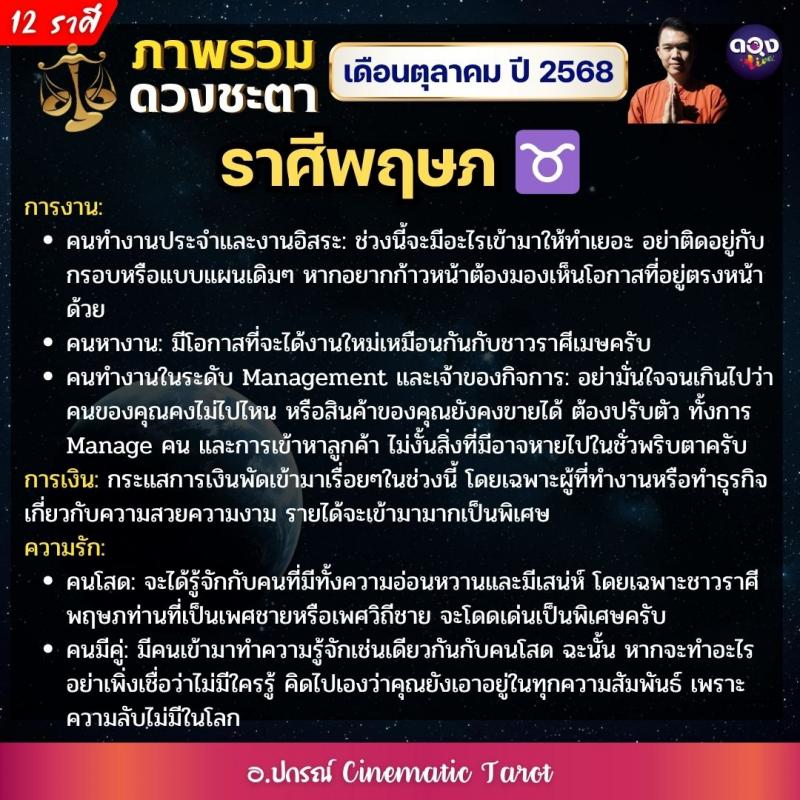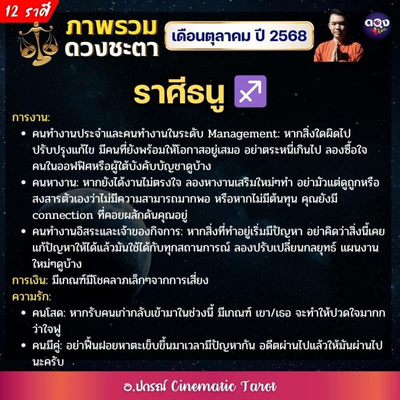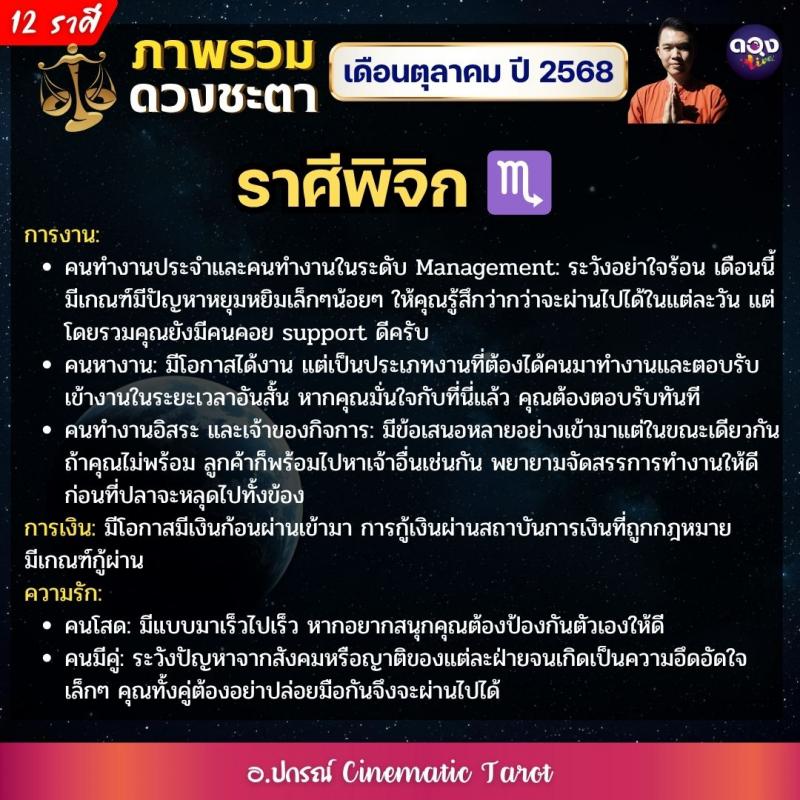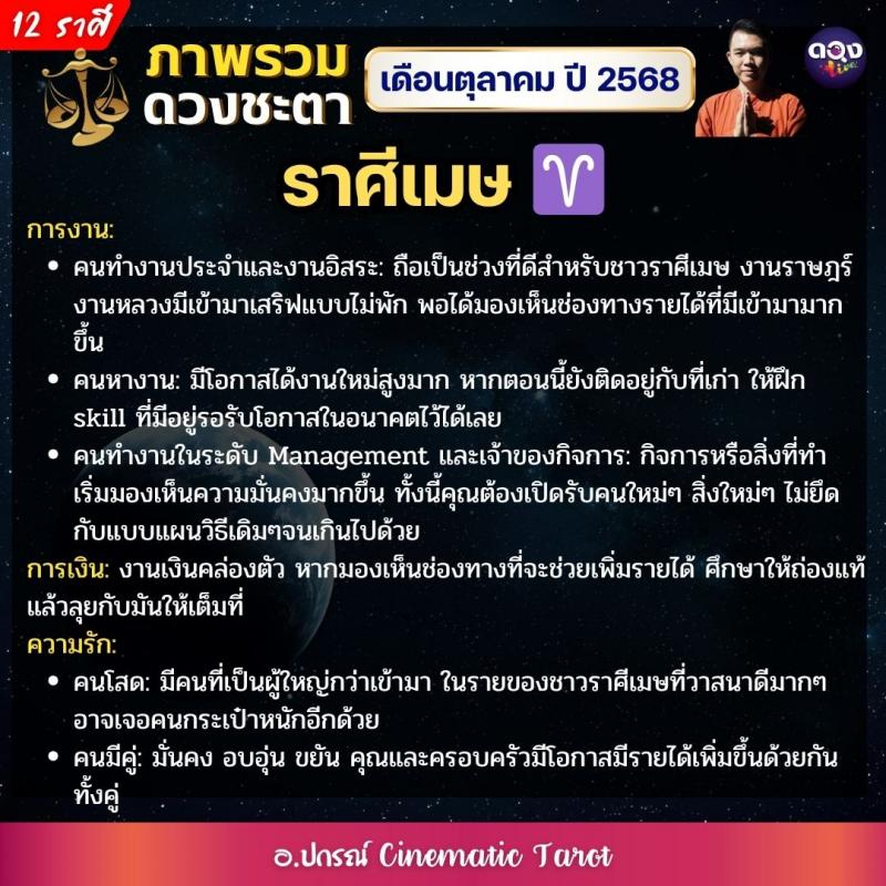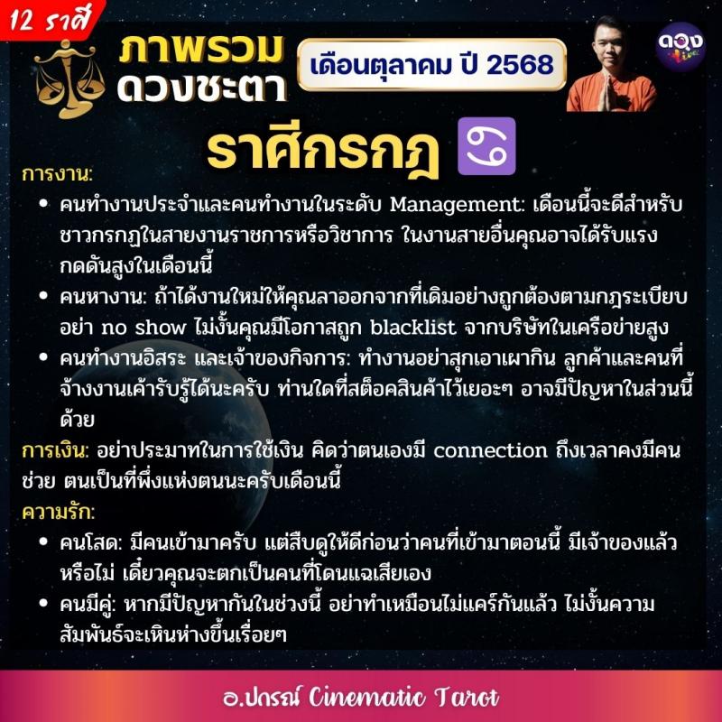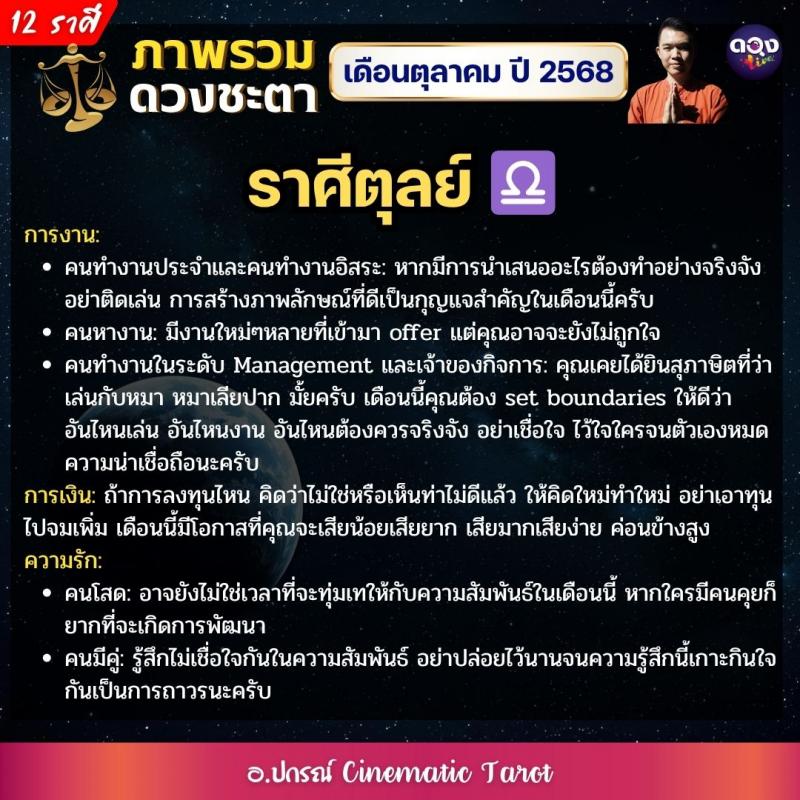 ภาพรวมดวงชะตาของทั้ง 12 ราศี ประจำเดือนตุลาคม ปี 2568 ดูได้ทั้ง ลัคนา และ ราศี อ.ปกรณ์ Cinematic Tarot