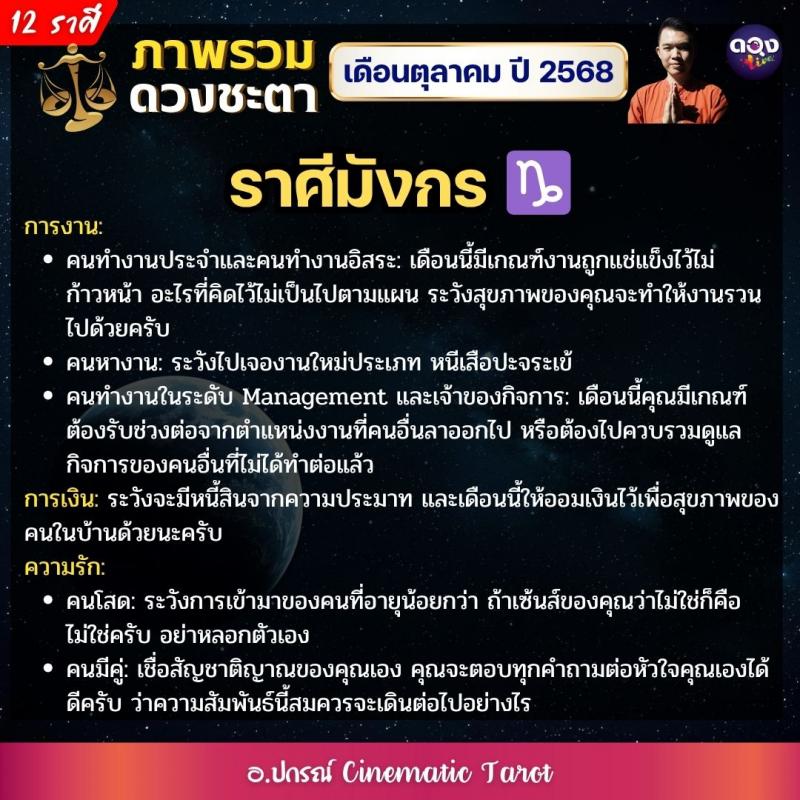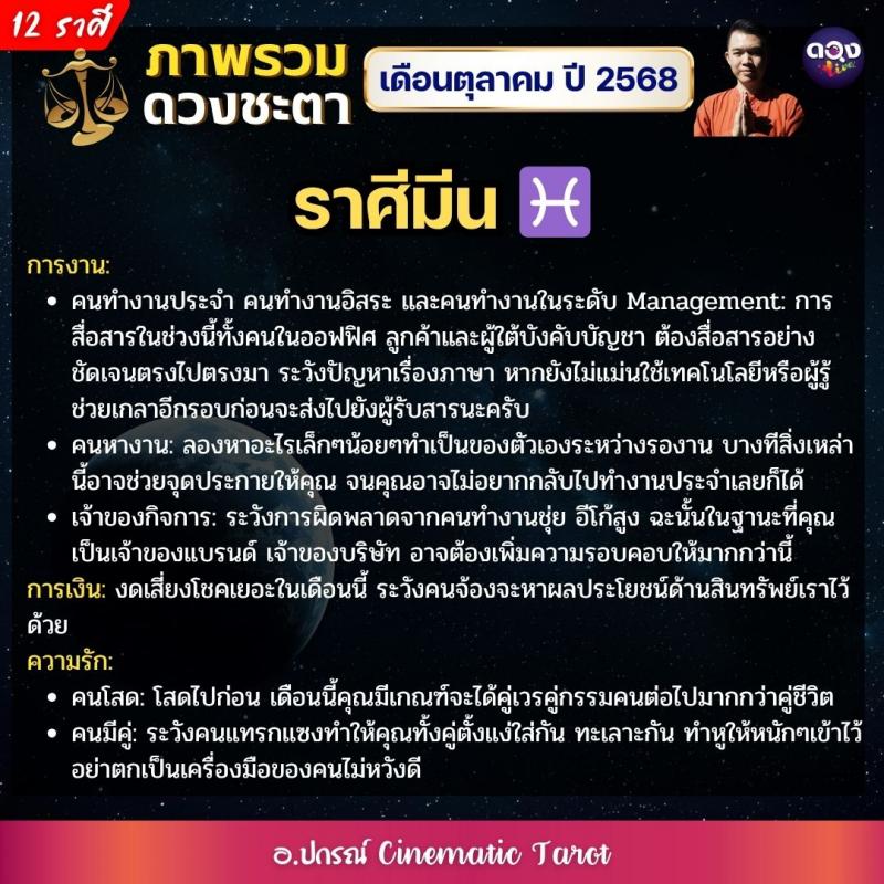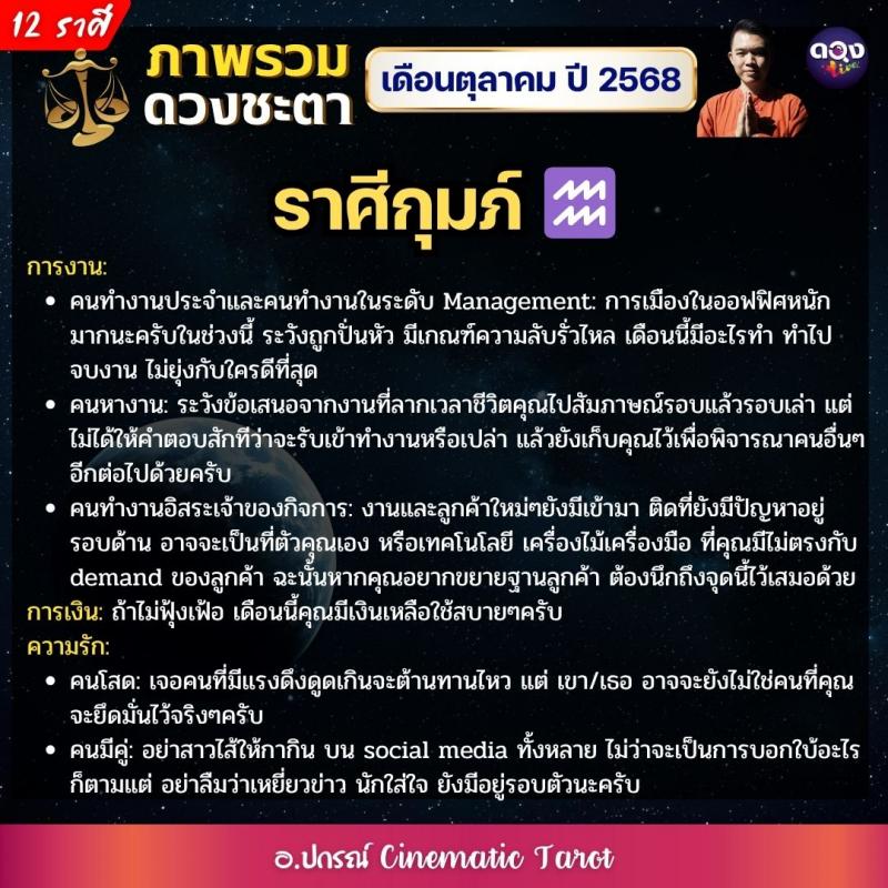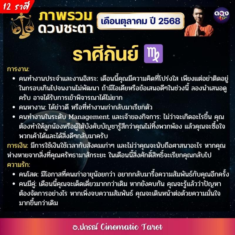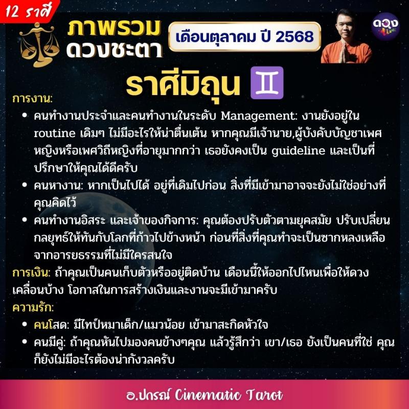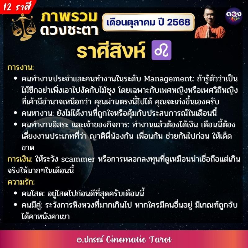 ภาพรวมดวงชะตาของทั้ง 12 ราศี ประจำเดือนตุลาคม ปี 2568 ดูได้ทั้ง ลัคนา และ ราศี อ.ปกรณ์ Cinematic Tarot