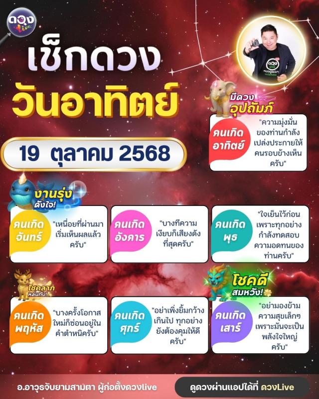 ดวงรายวันอาทิตย์ที่ 19 ตุลาคม 2568 โดย อ.อาวุธจับยามสามตา – ผู้ก่อตั้งดวง Live