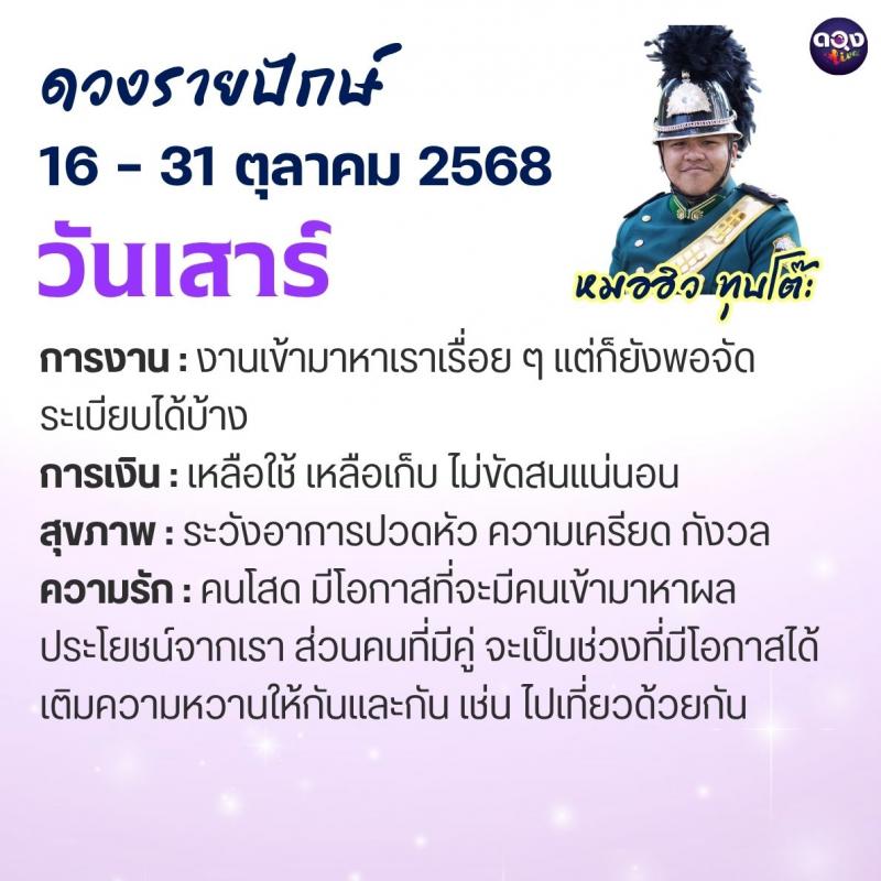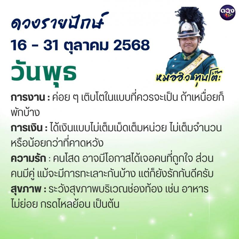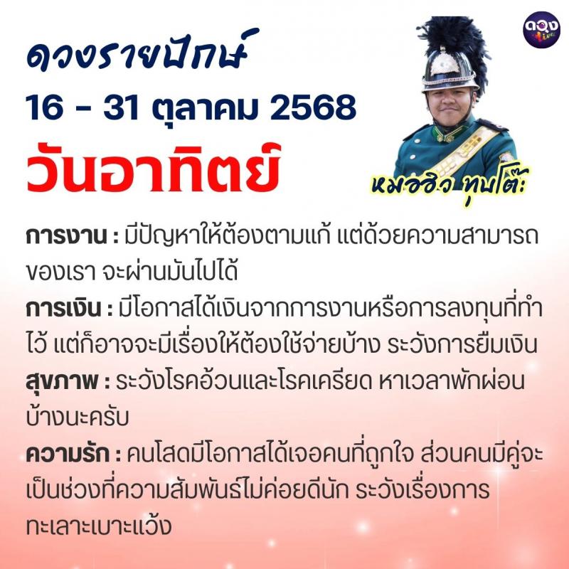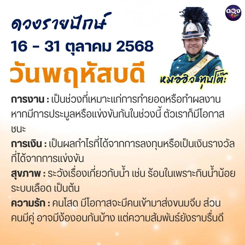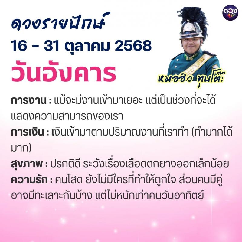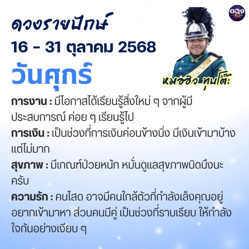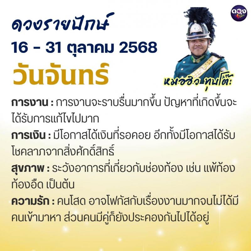 ดวงรายปักษ์ประจำวันที่ 16 – 31 ตุลาคม 2568 ทำนายโดย หมอฮิว ทุบโต๊ะ