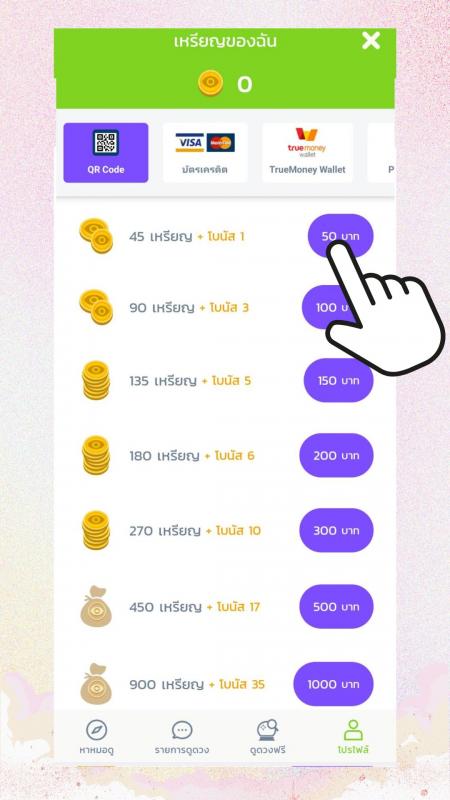 เลือกรายการเติมเหรียญที่คุณต้องการ ไม่จำกัดยอดขั้นต่ำ