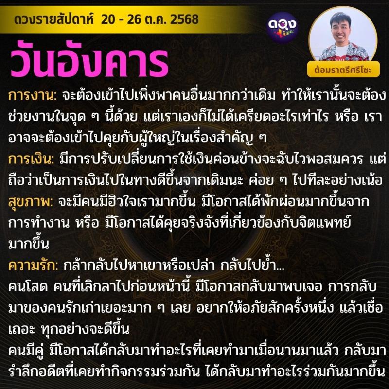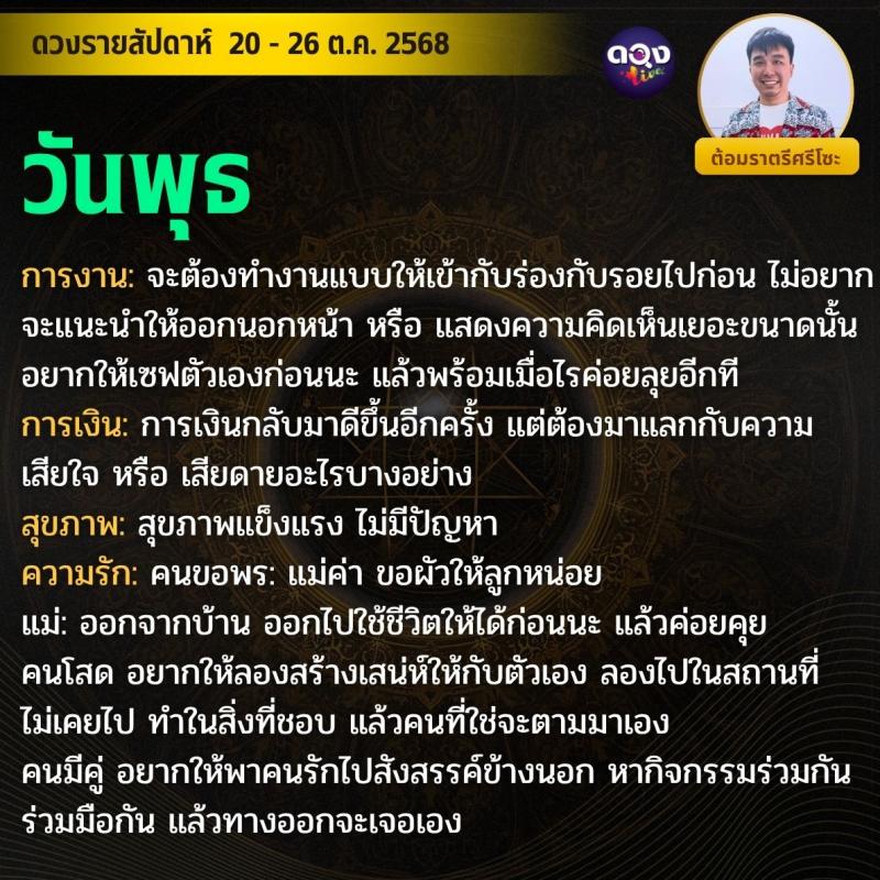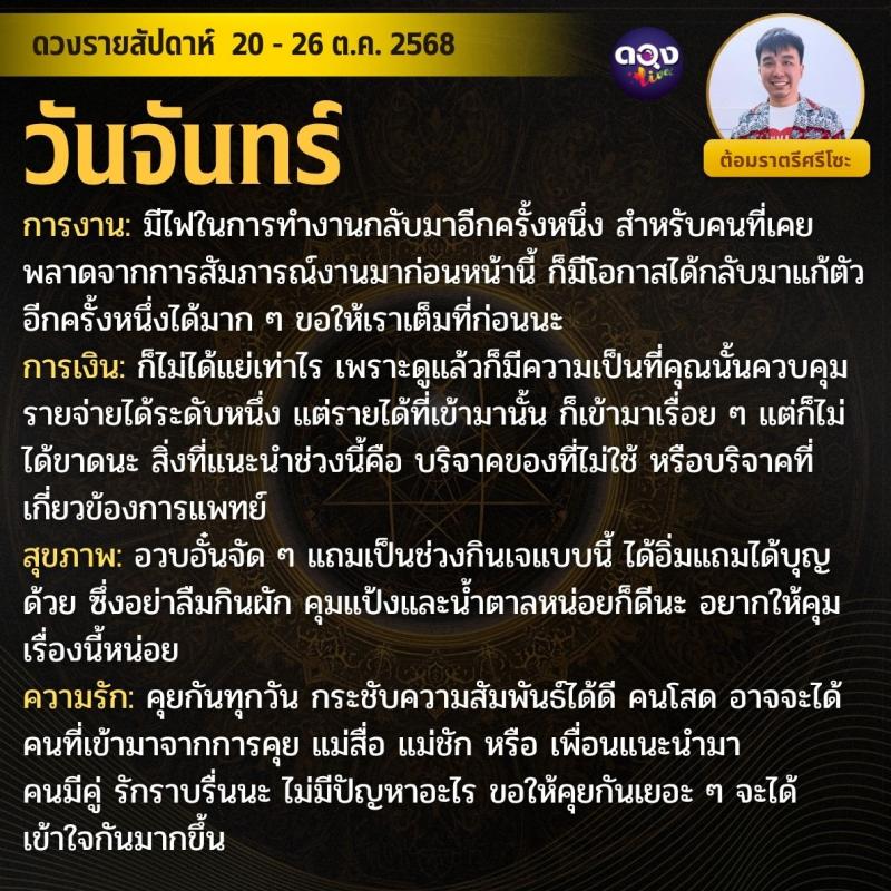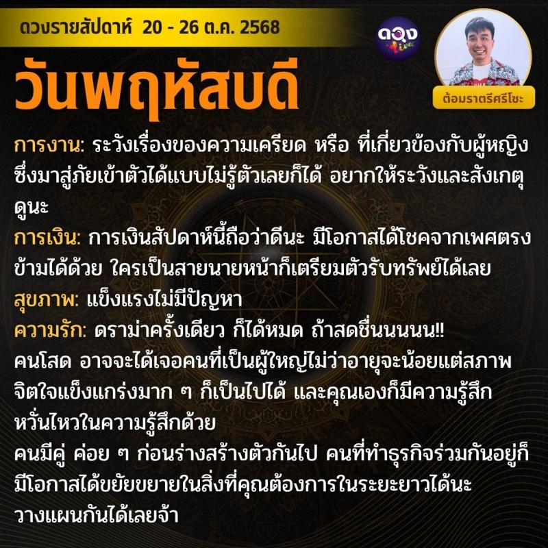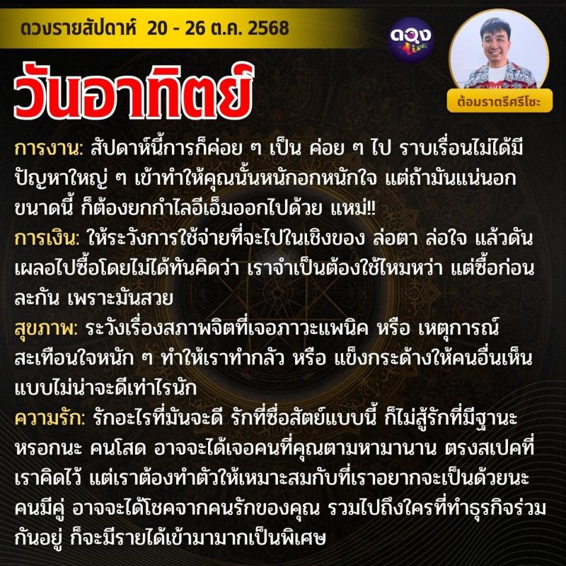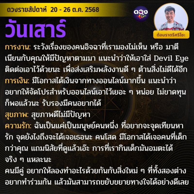 ดวงรายสัปดาห์ 20 - 26 ตุลาคม 2568 by ต้อมราตรีศรีโซะ