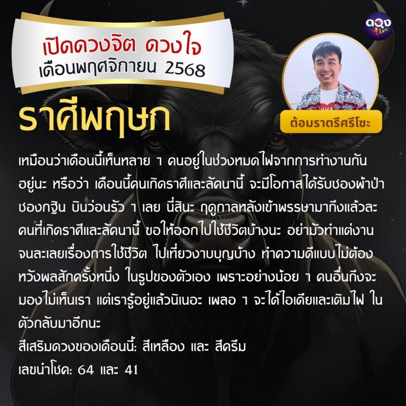 เปิดดวงจิต ดวงใจเดือนพฤศจิกายน 2568 by ต้อมราตรีศรีโซะ