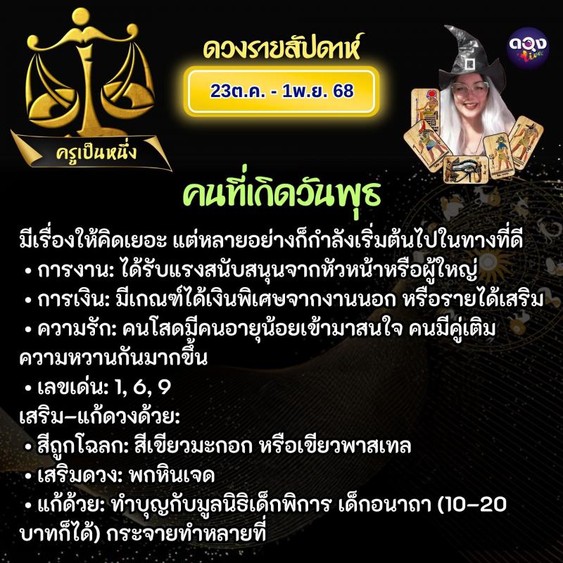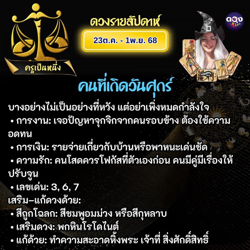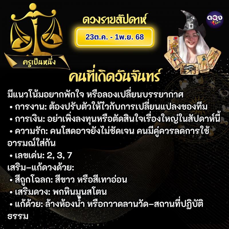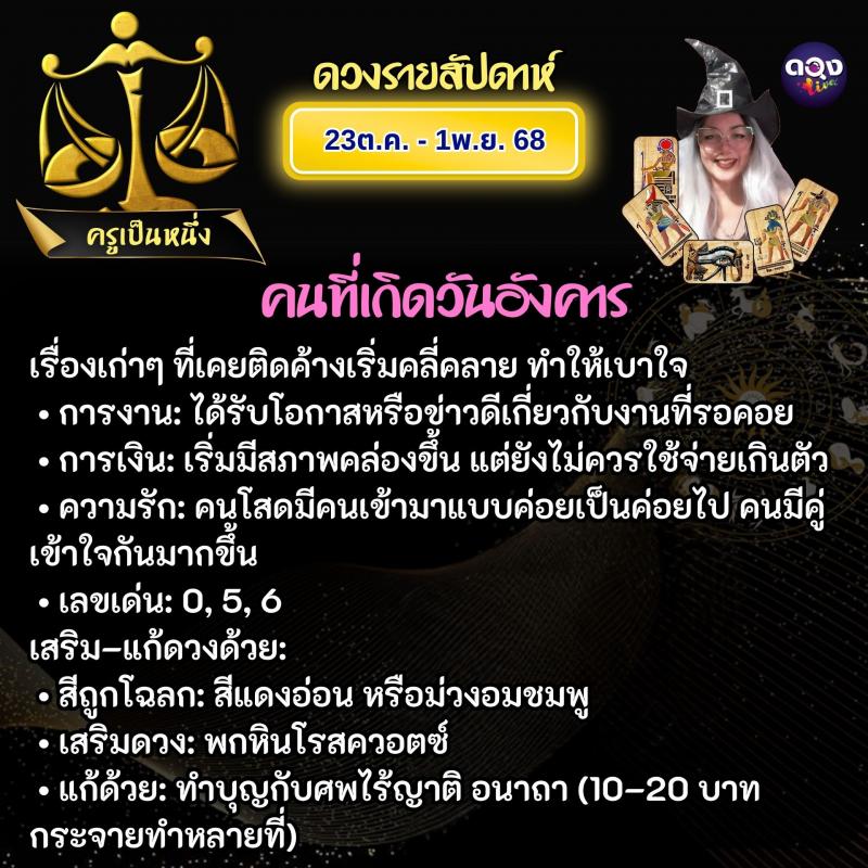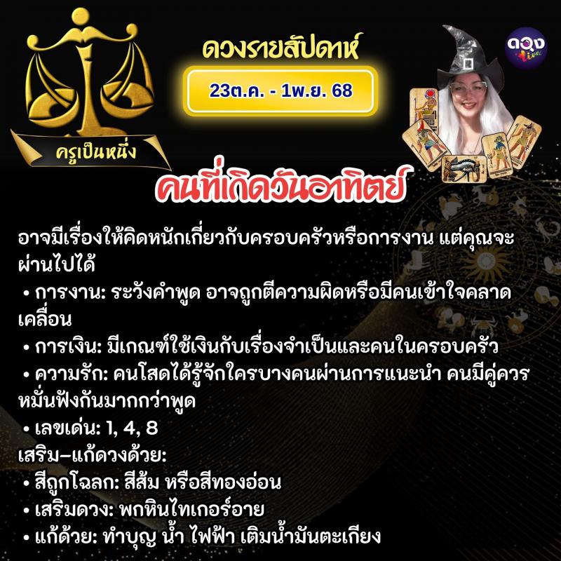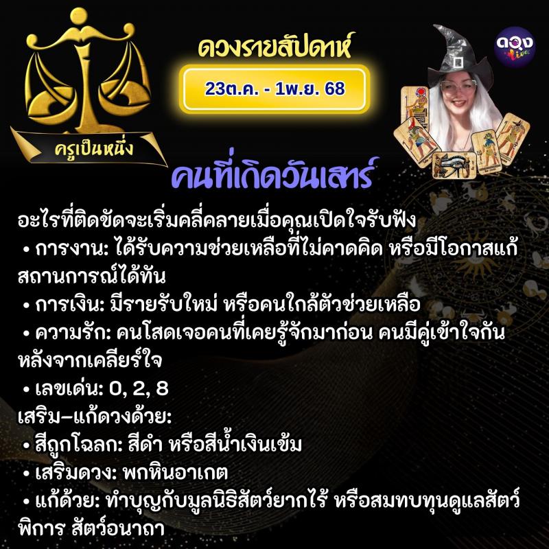 ดวงรายสัปดาห์ 26 ตุลาคม – 1 พฤศจิกายน 2568 ทำนายโดย ครูเป็นหนึ่ง