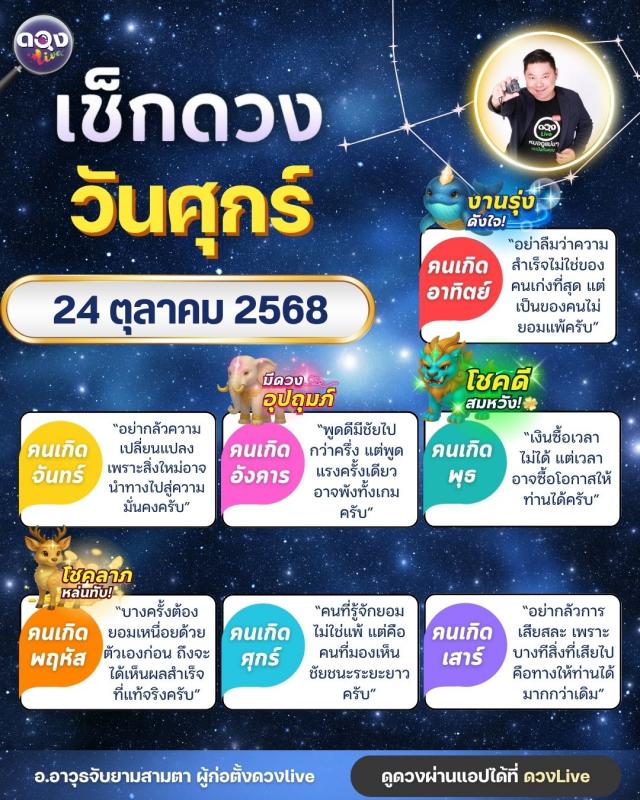 ดวงรายวันศุกร์ที่ 24 ตุลาคม 2568 โดย อ.อาวุธจับยามสามตา – ผู้ก่อตั้งดวง Live