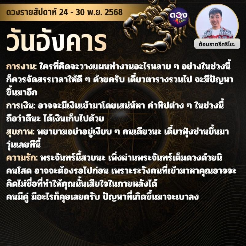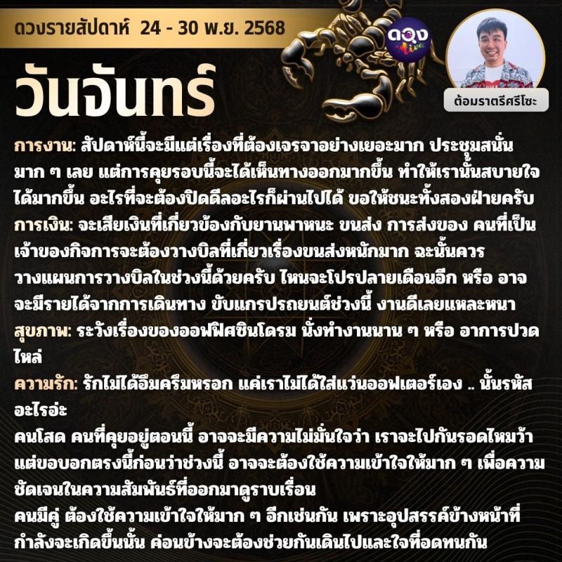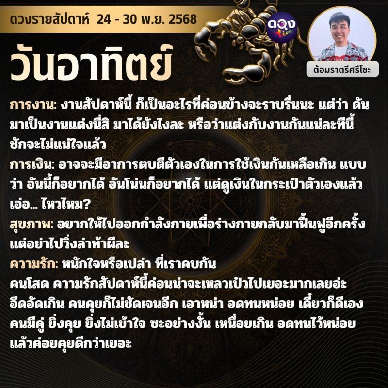 ดวงรายสัปดาห์ 24–30 พฤศจิกายน 2568 by ต้อมราตรีศรีโซะ