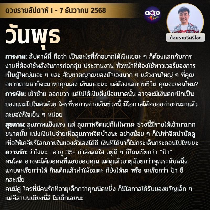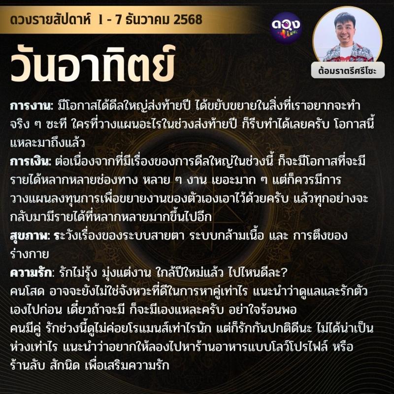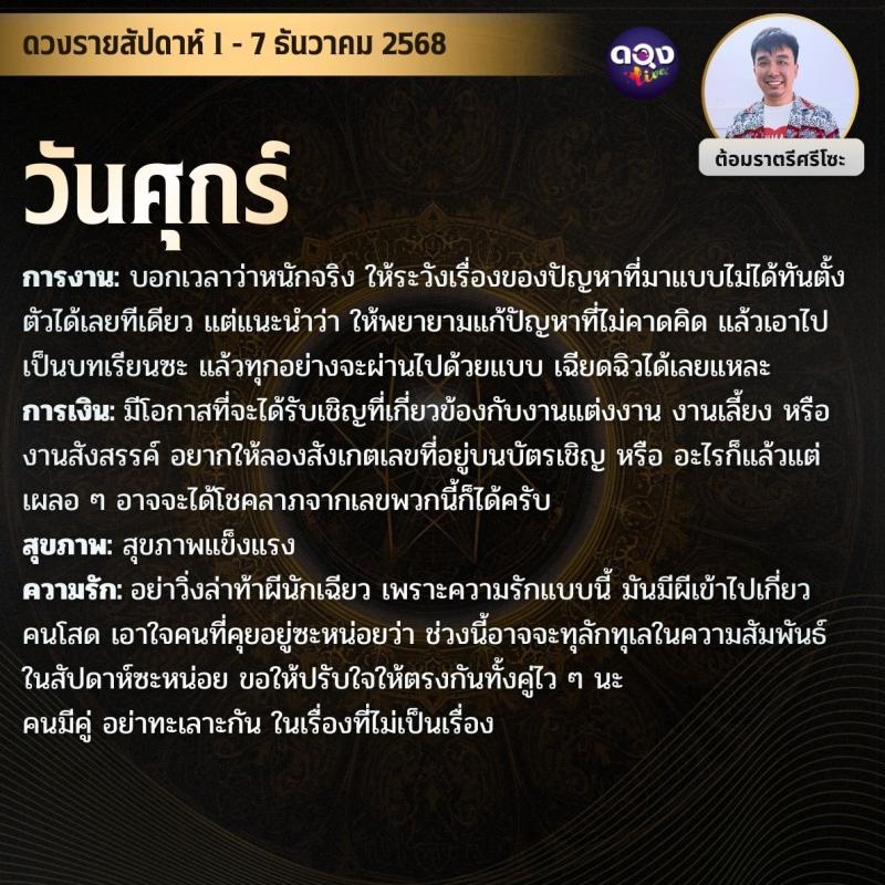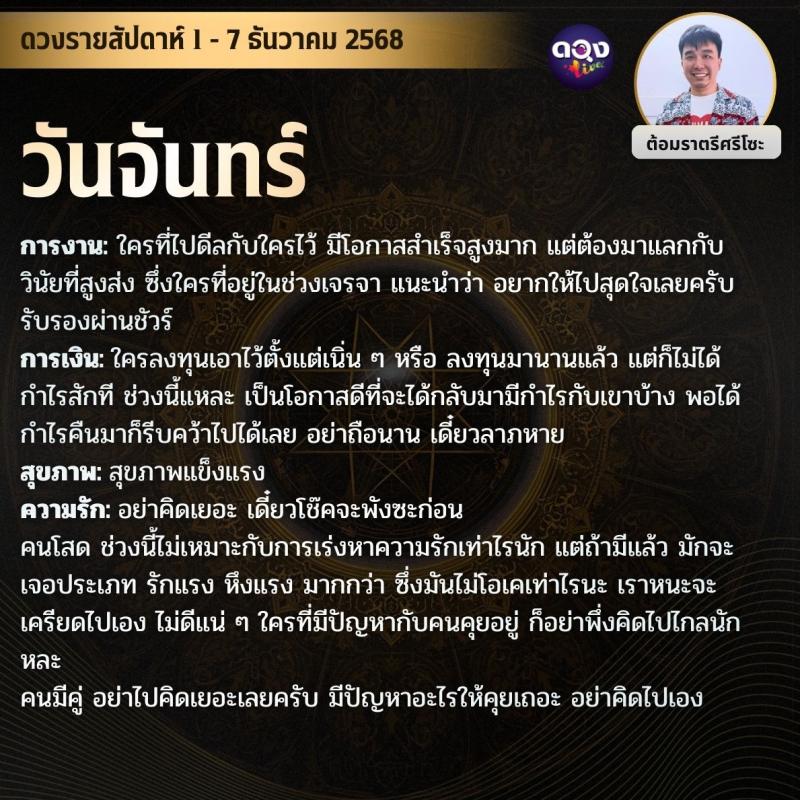 ดวงรายสัปดาห์ 1 - 7 ธ.ค. 2568 by ต้อมราตรีศรีโซะ