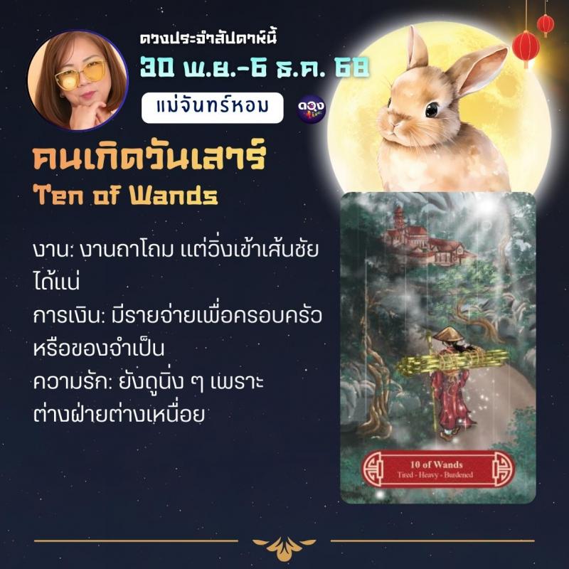 คนที่ท้อจะเห็นทาง คนที่เงียบจะได้คำตอบ โดยเฉพาะพลังของ วันอาทิตย์ – อังคาร เด่นเรื่องงาน ส่วน วันศุกร์ – พุธ มีพลังด้านความรักและความสำเร็จ
