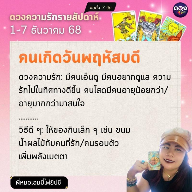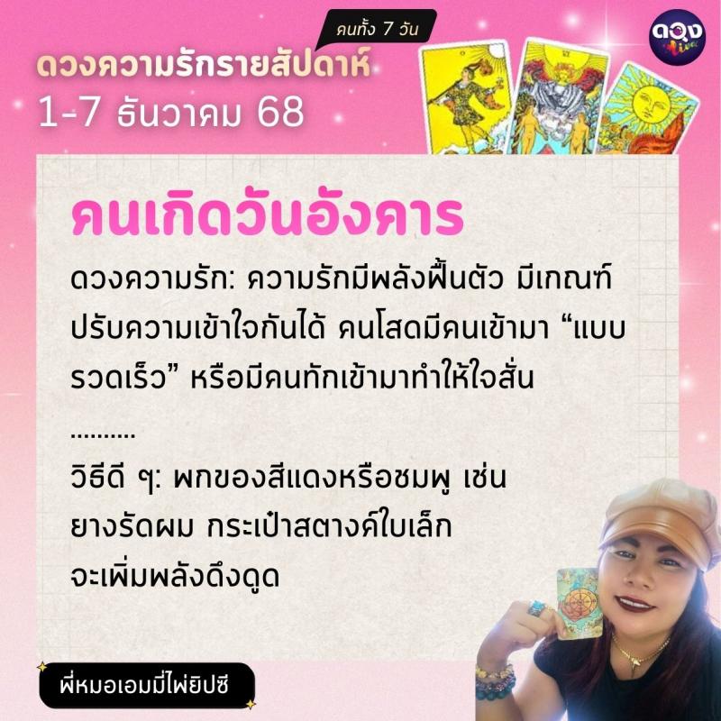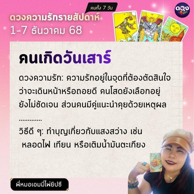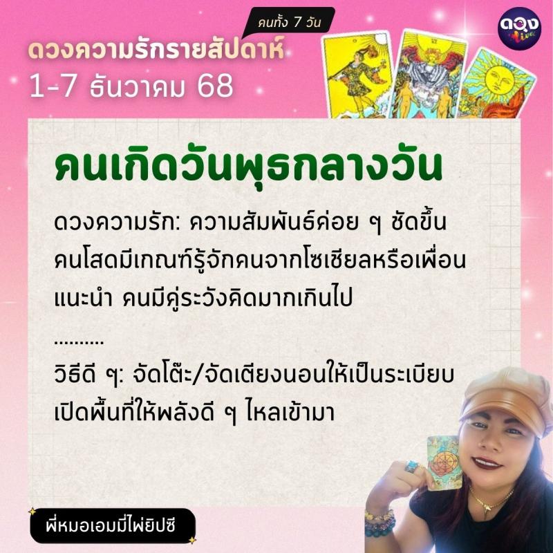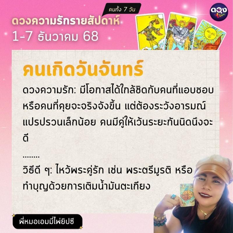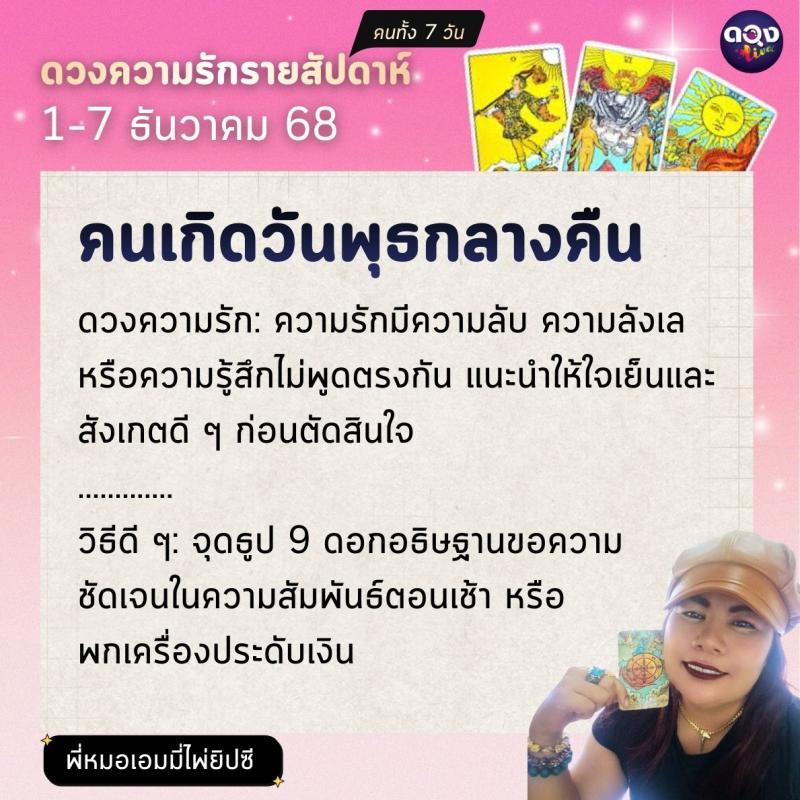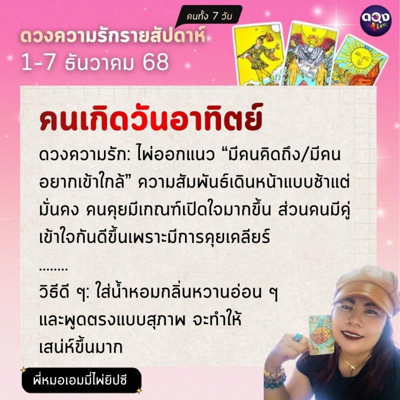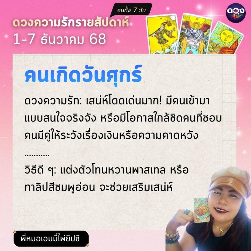 ดวงความรักรายสัปดาห์ 1–7 ธันวาคม 2568 พร้อมวิธีดีๆ เสริมดวงความรักของคนทั้ง 7 วัน ทำนายโดย พี่หมอเอมมี่ไพ่ยิปซี