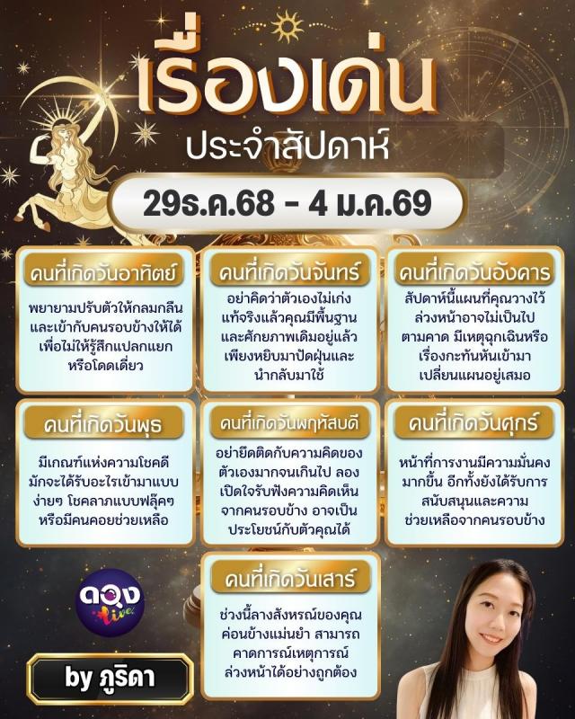 เรื่องเด่นประเด็นเด็ดประจำสัปดาห์ ประจำวันที่ 29 ธันวาคม 2568 – 4 มกราคม 2569โดย ภูริดา