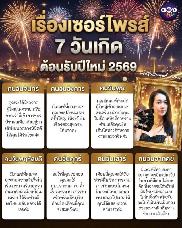 เรื่องเซอร์ไพรส์ 7 วันเกิด ต้อนรับปีใหม่ 2569 ทำนายโดยอาจารย์ฮันนี่ไพ่ป๊อกจิตสื่อสัมผัส