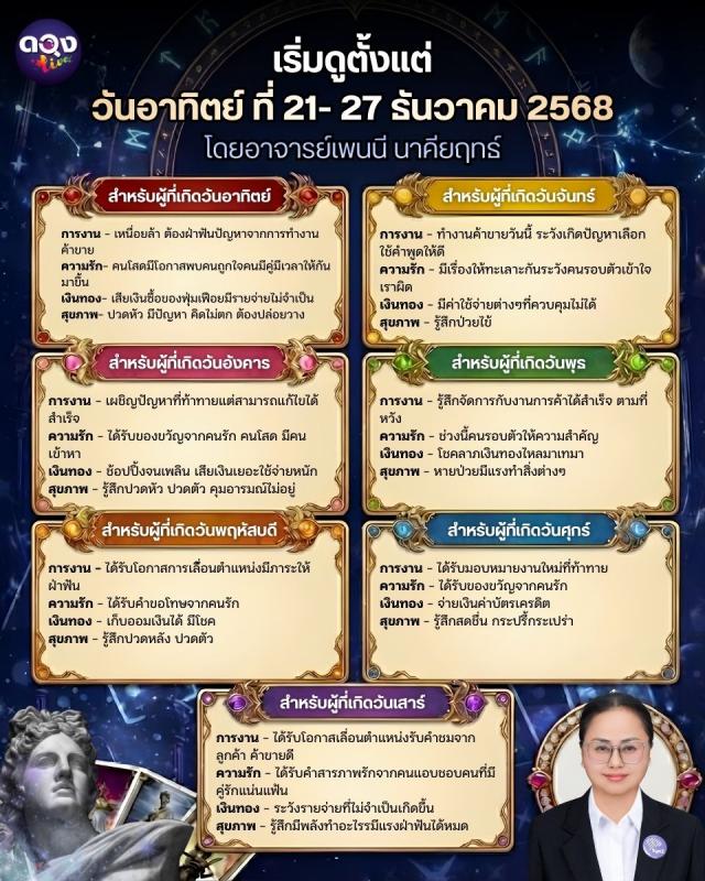 เริ่มดูตั้งแต่วันอาทิตย์ ที่ 21- 27 ธันวาคม 2568 โดยอาจารย์เพนนี นาคียฤทธ์