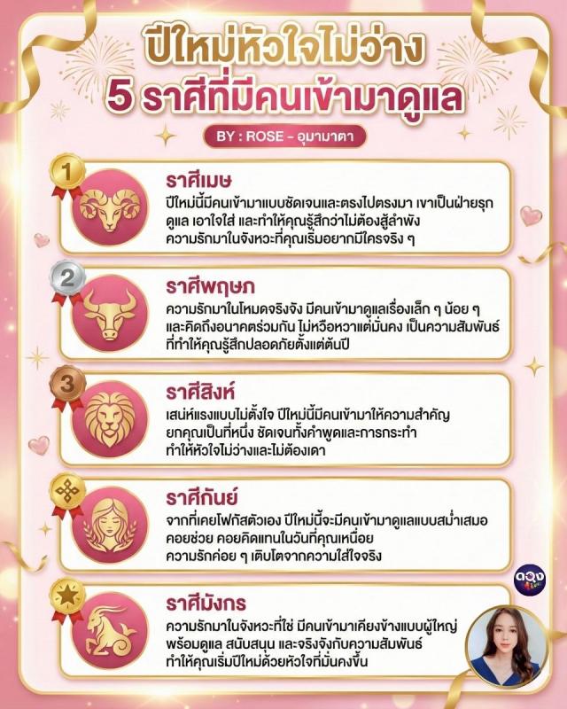 ปีใหม่หัวใจไม่ว่าง 5 ราศีที่มีคนเข้ามาดูแล BY ROSE อุมามาตา