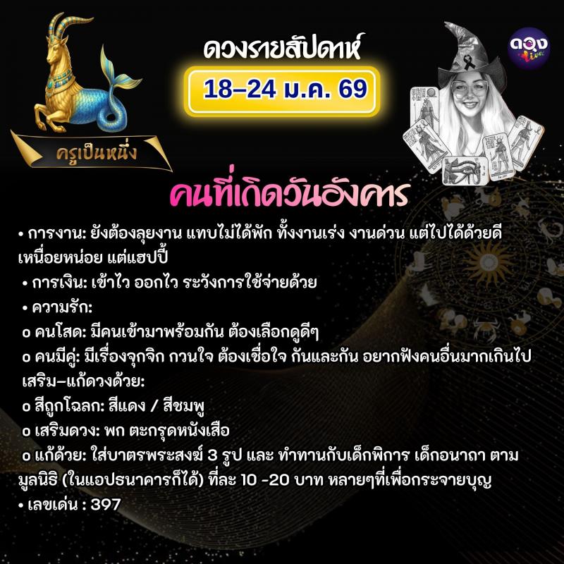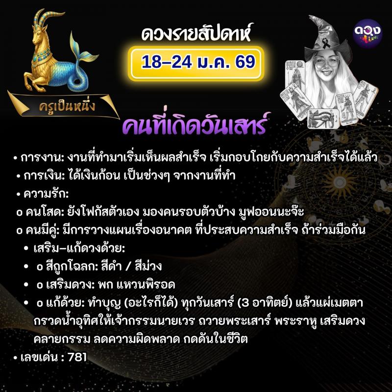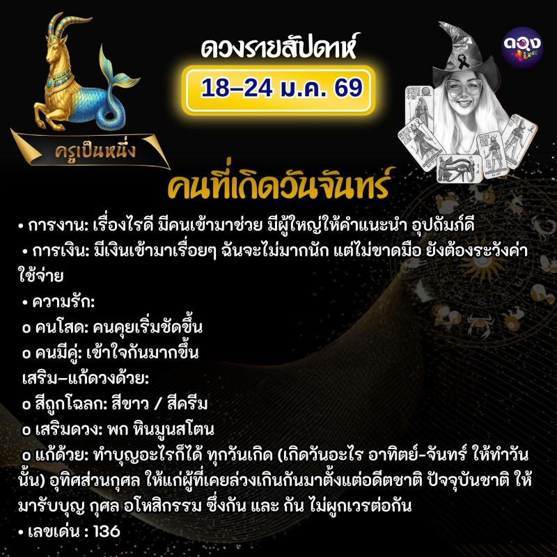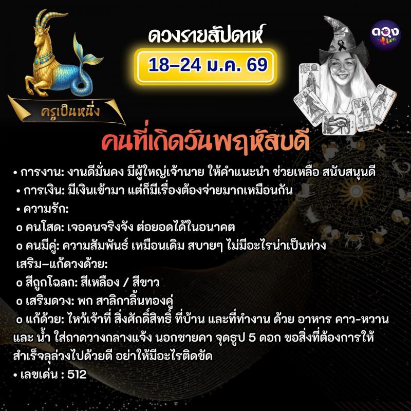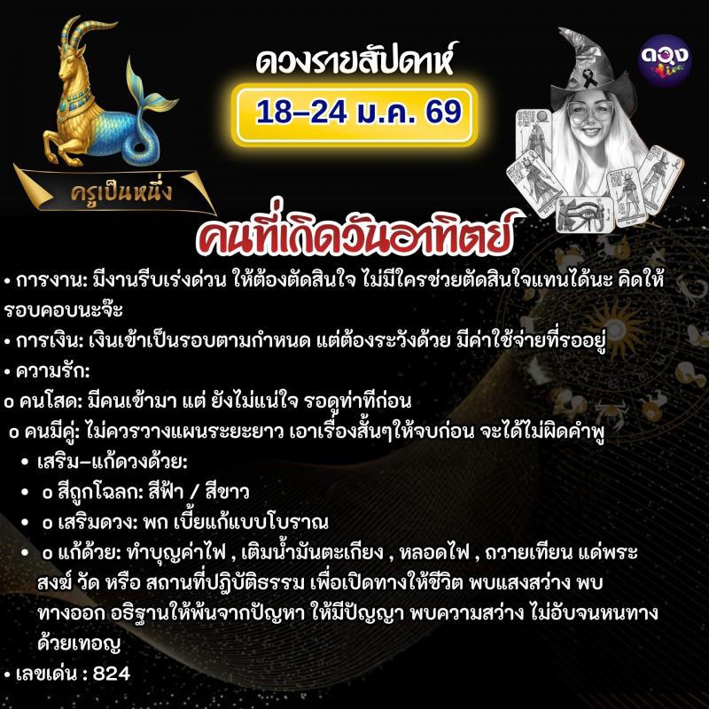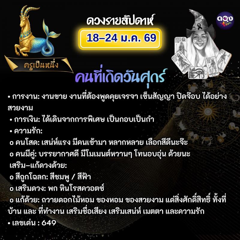 ดวงรายสัปดาห์วันที่ 18–24 ม.ค. 69 ทำนายโดย ครูเป็นหนึ่ง