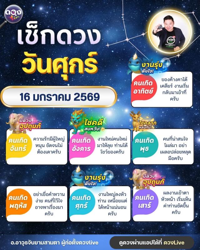 ดวงรายวันประจำวันศุกร์ที่ 16 มกราคม 2569 โดย อ.อาวุธจับยามสามตา – ผู้ก่อตั้งดวง Live