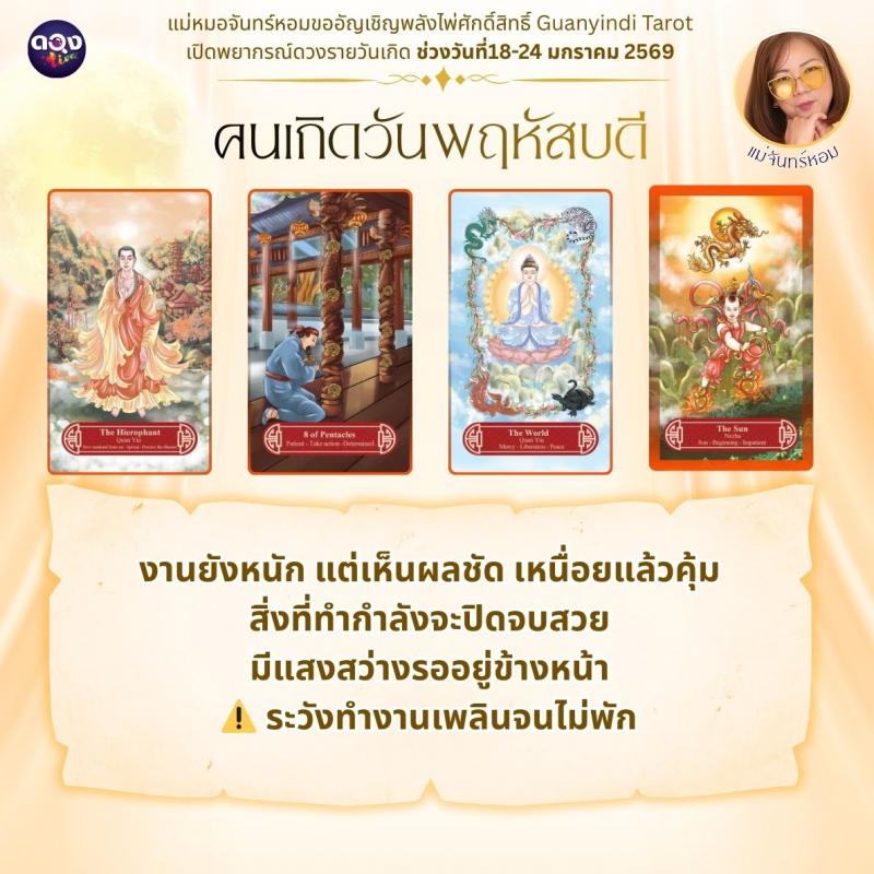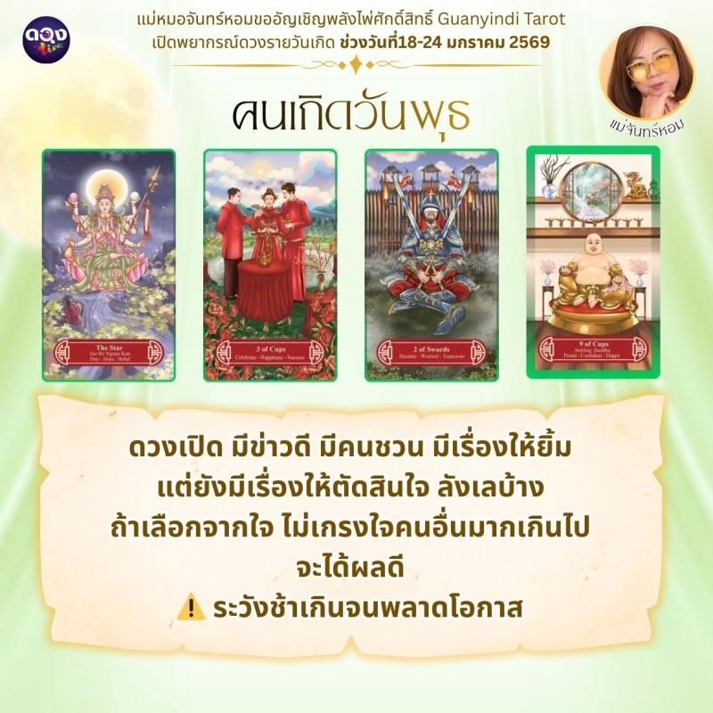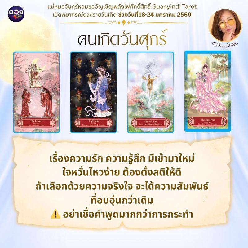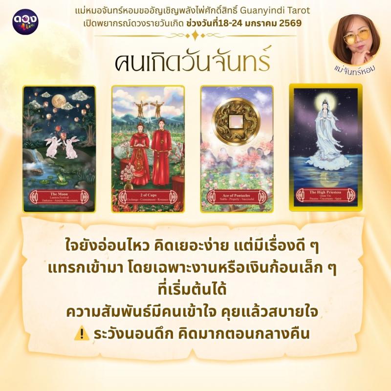 แม่หมอจันทร์หอมขออัญเชิญพลังไพ่ศักดิ์สิทธิ์ Guanyindi Tarot เปิดพยากรณ์ดวงรายวันเกิด ช่วงวันที่ 18-24 มกราคม 2569