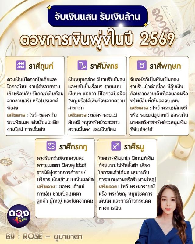 จับเงินแสน รับเงินล้าน ดวงการเงินพุ่งในปี 2569 : BY : ROSE - อุมามาตา