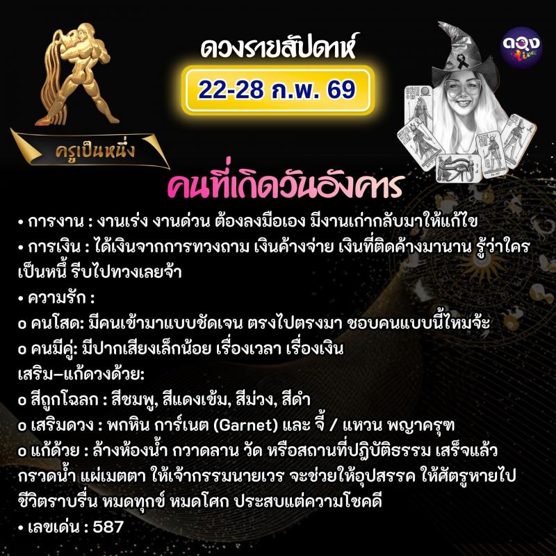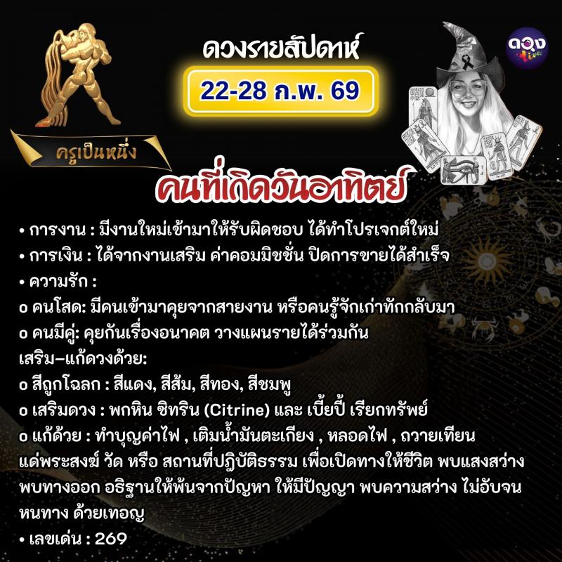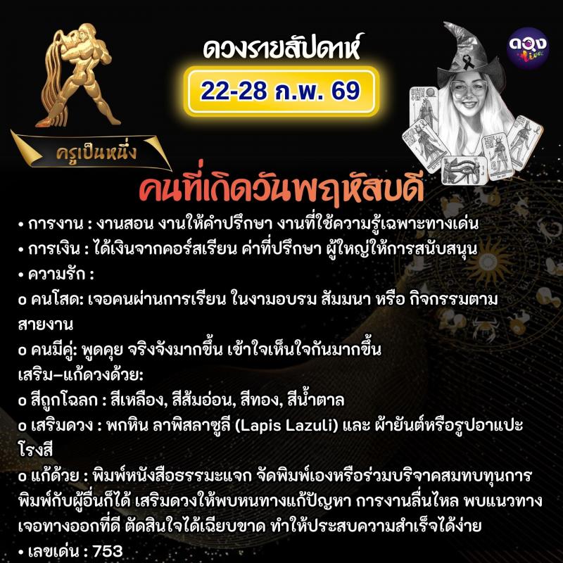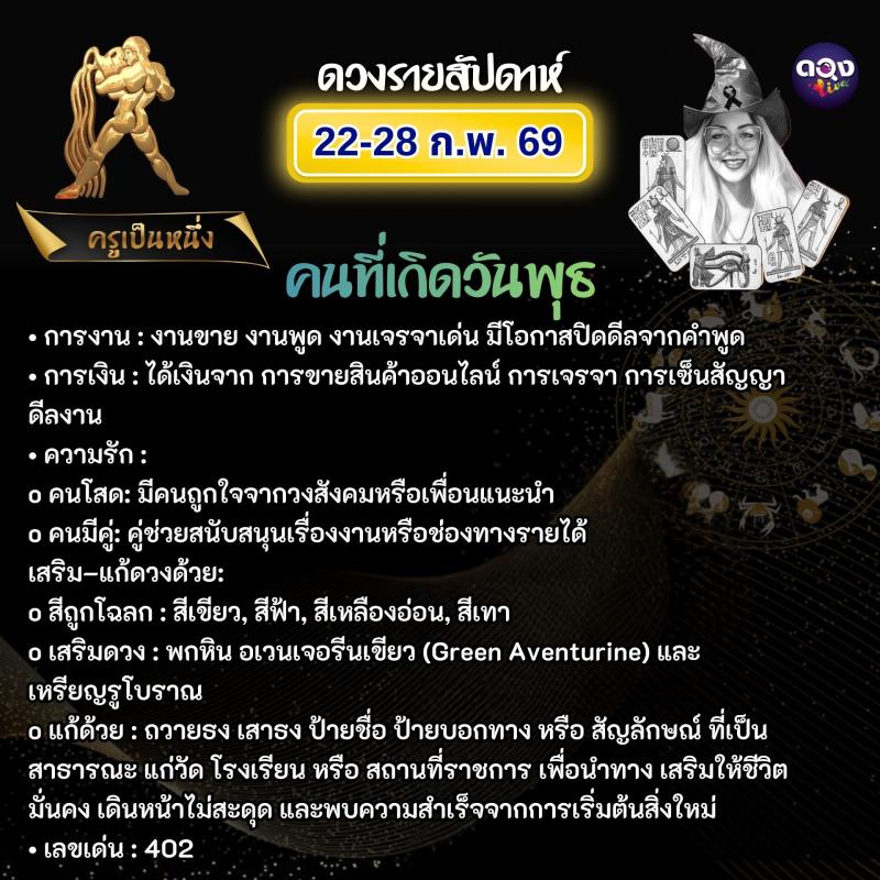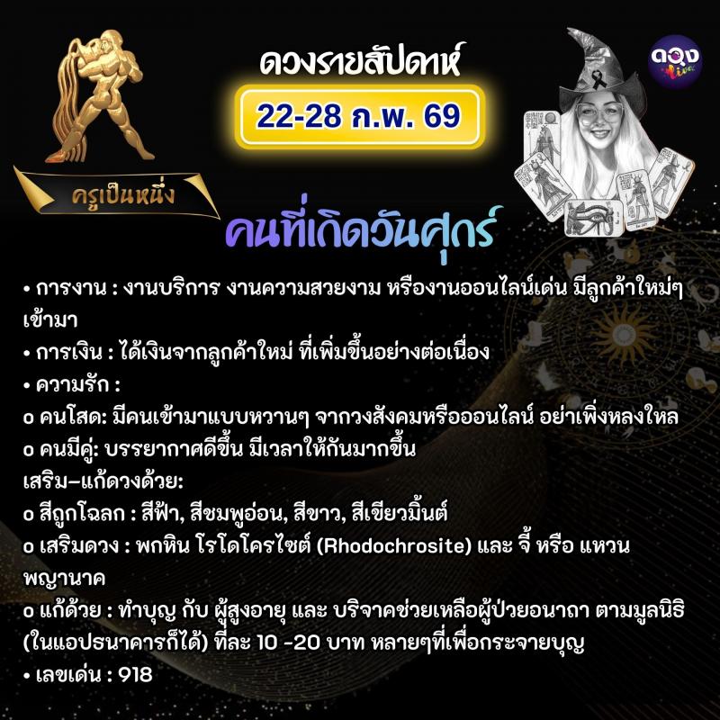 ดวงรายสัปดาห์ 22–28 กุมภาพันธ์ 2569 ทำนายโดย ครูเป็นหนึ่ง