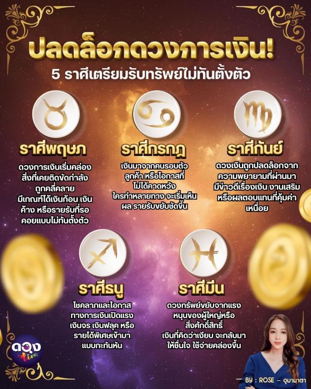 ปลดล็อกดวงการเงิน! 5 ราศีเตรียมรับทรัพย์ไม่ทันตั้งตัว BY : ROSE - อุมามาตา