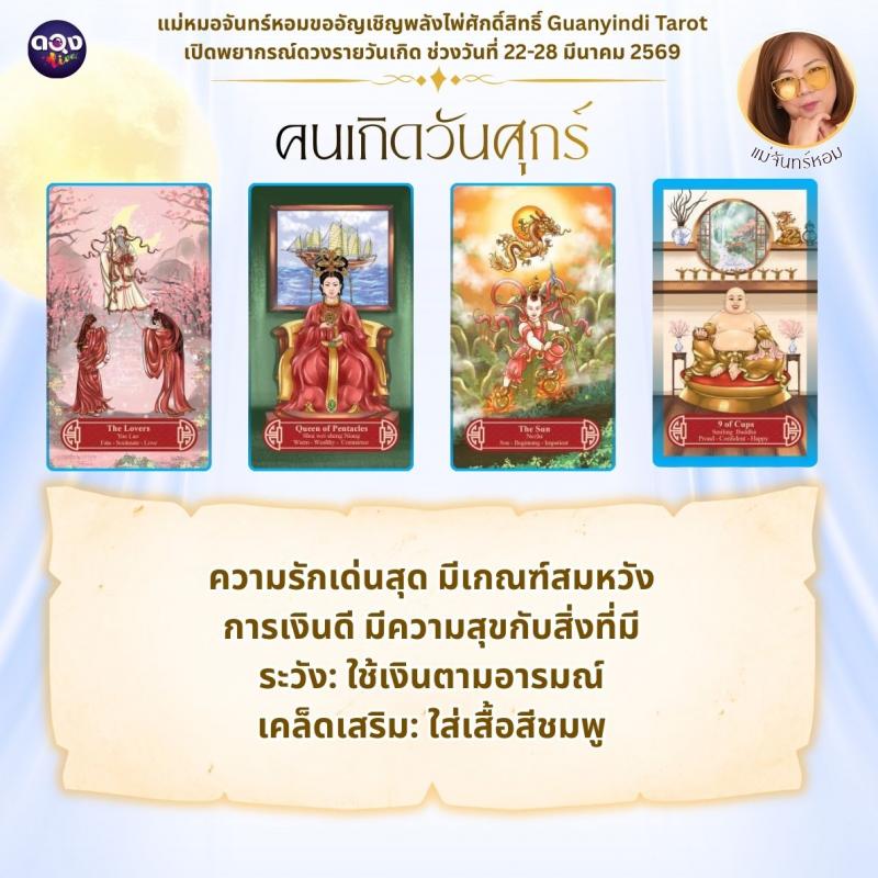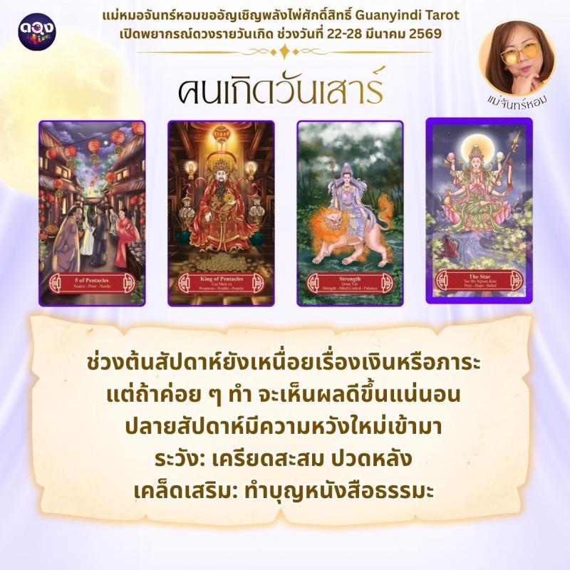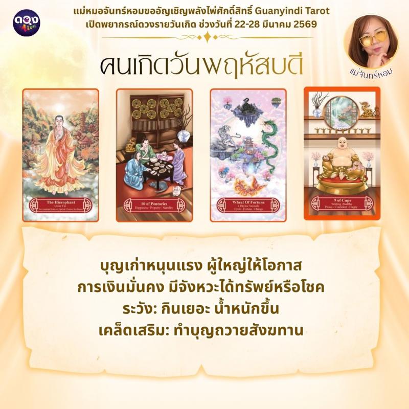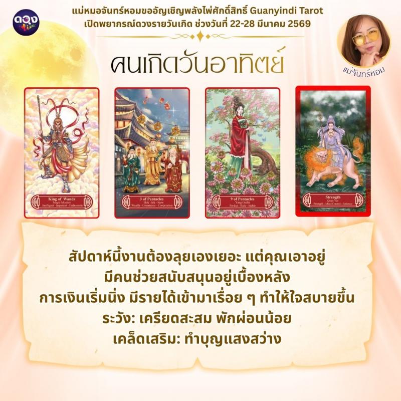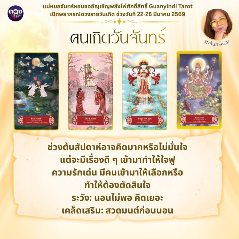 แม่หมอจันทร์หอมขออัญเชิญพลังไพ่ศักดิ์สิทธิ์ Guanyindi Tarot เปิดพยากรณ์ดวงรายวันเกิด ช่วงวันที่ 22-28 มีนาคม 2569