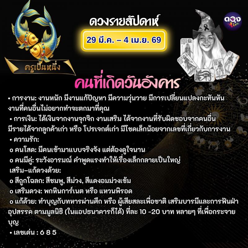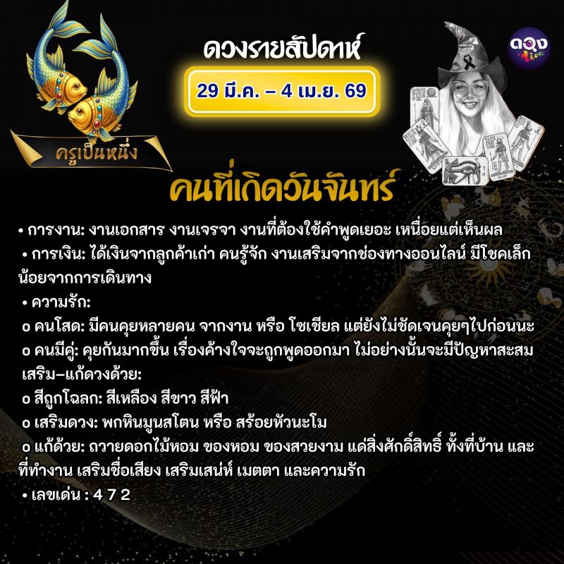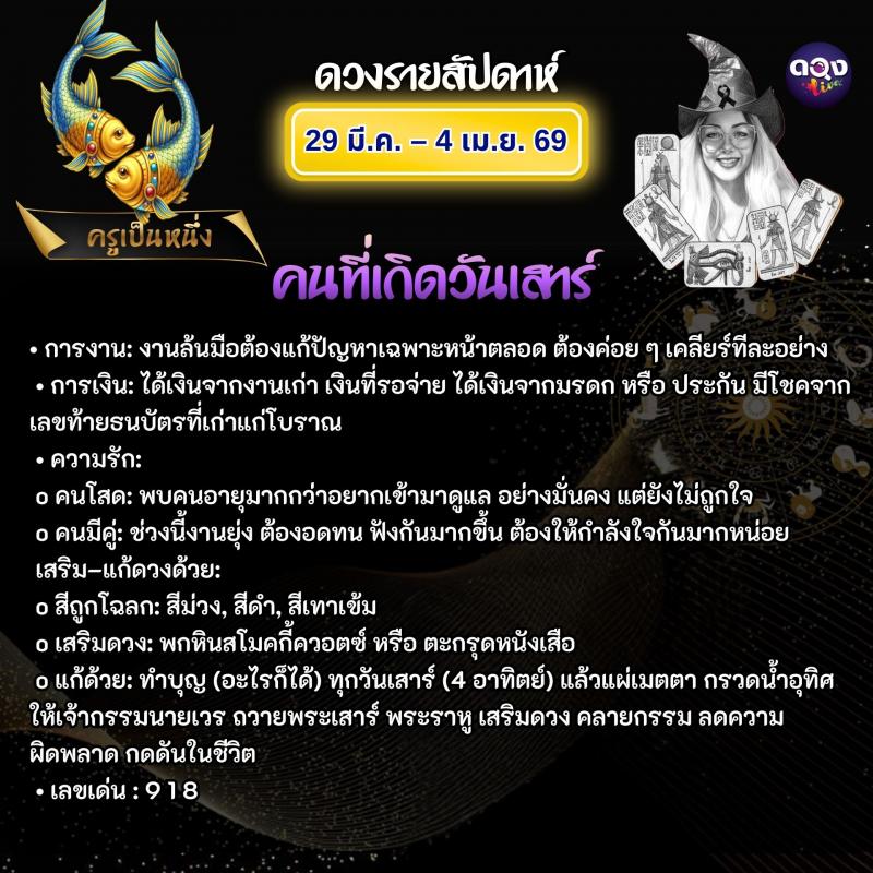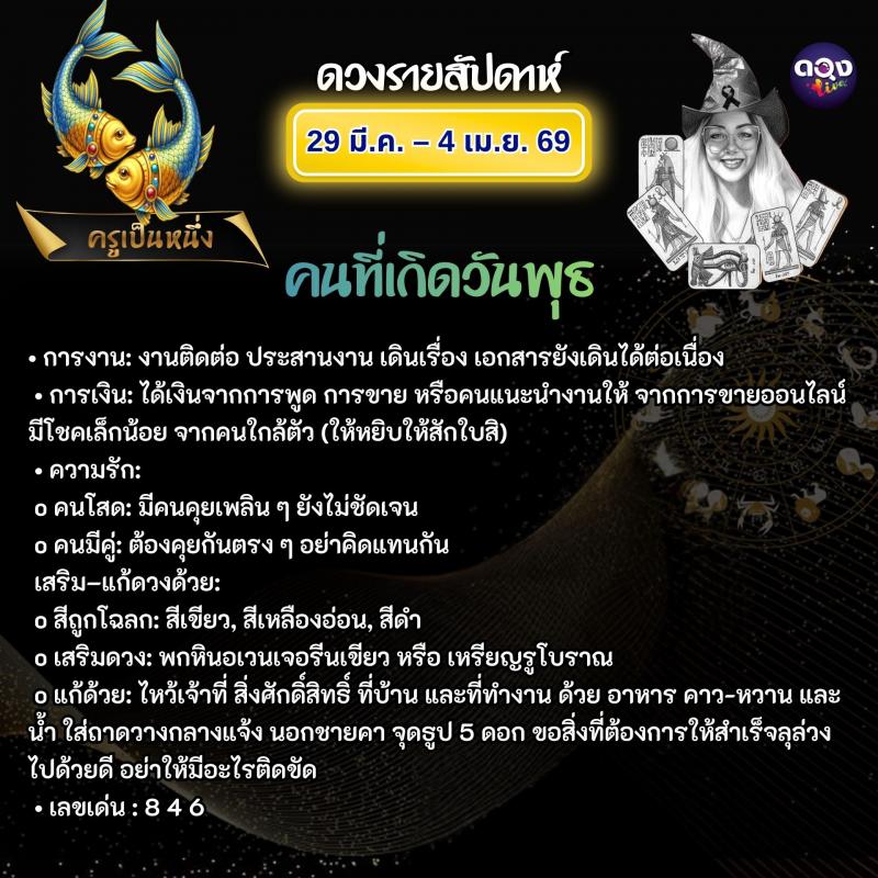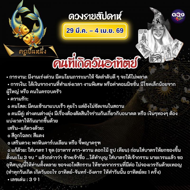 ดวงรายสัปดาห์ 29 มี.ค. – 4 เม.ย. 2569 ทำนายโดย ครูเป็นหนึ่ง