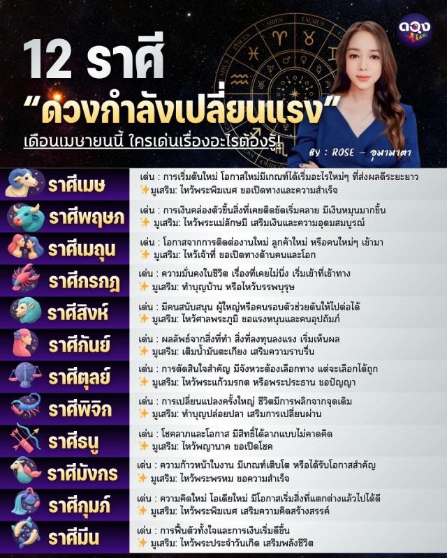 12 ราศี “ดวงกำลังเปลี่ยนแรง” เดือนเมษายนนี้ ใครเด่นเรื่องอะไรต้องรู้! BY : ROSE - อุมา มาตา