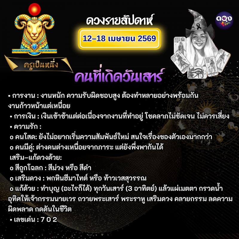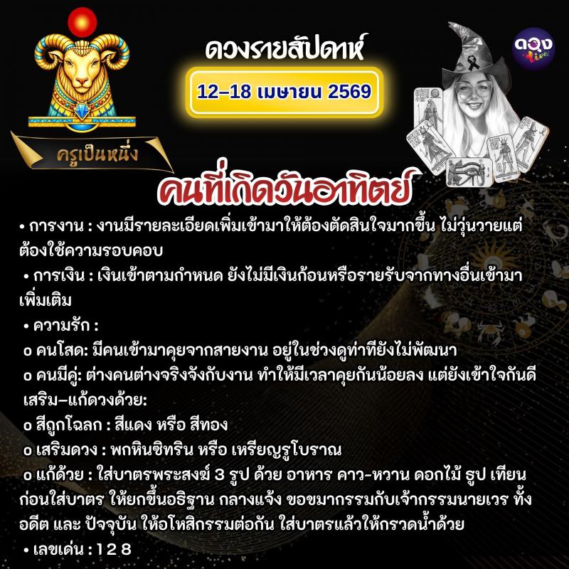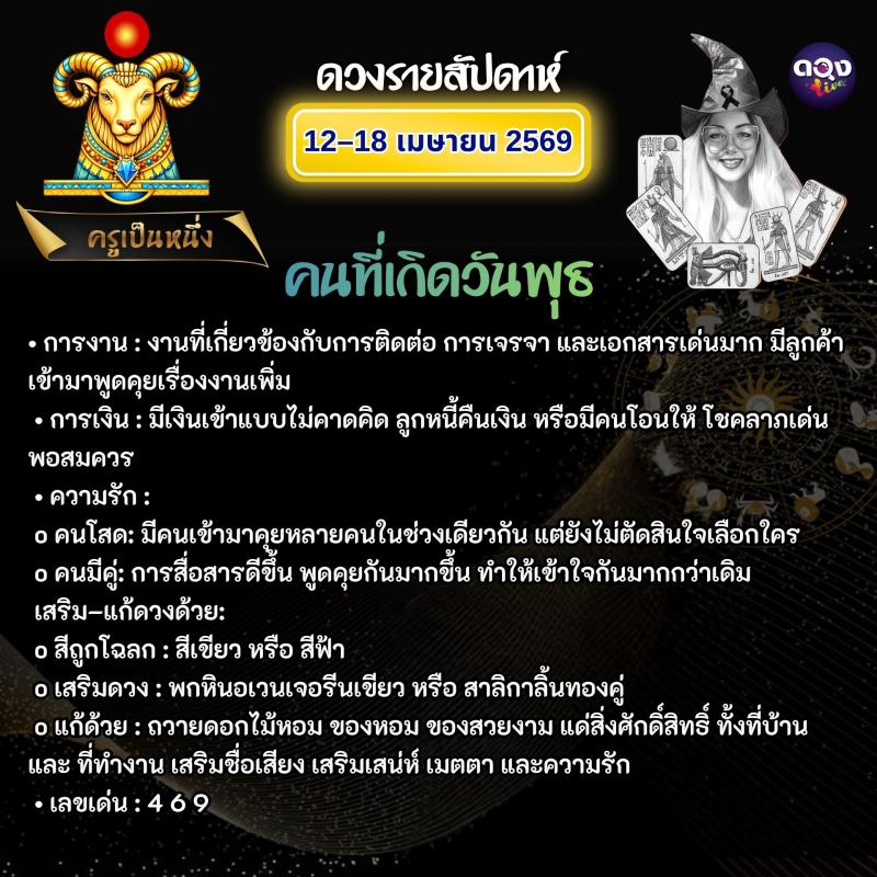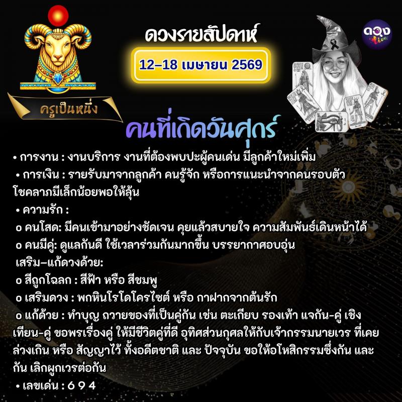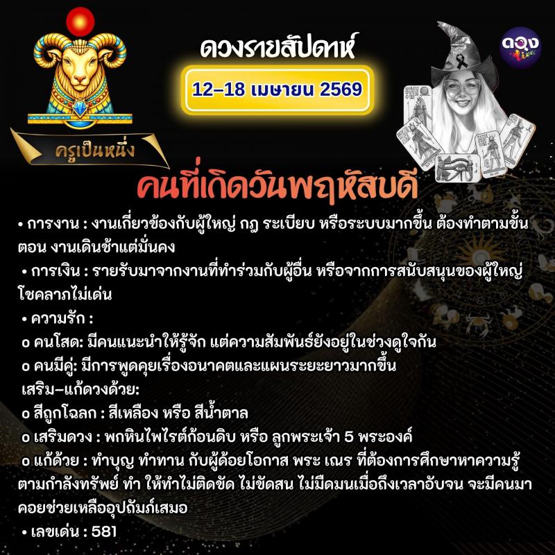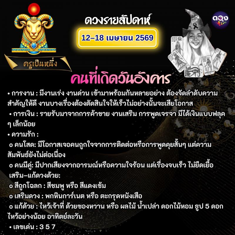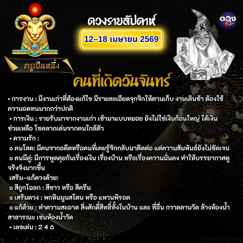 ดวงรายสัปดาห์วันที่ 12–18 เมษายน 2569 ทำนายโดย ครูเป็นหนึ่ง