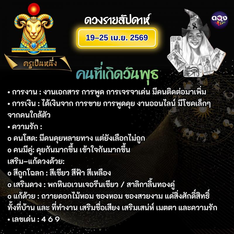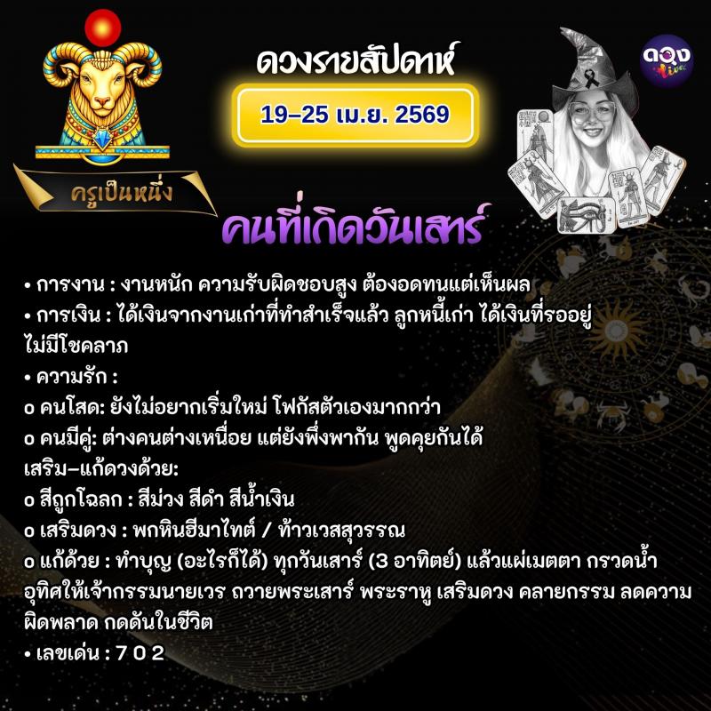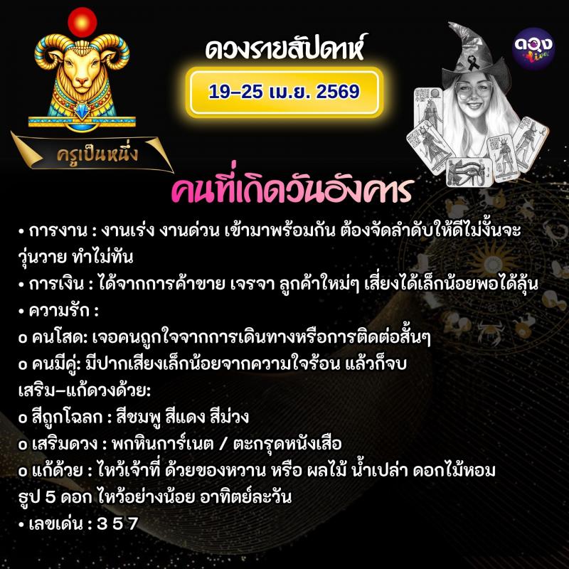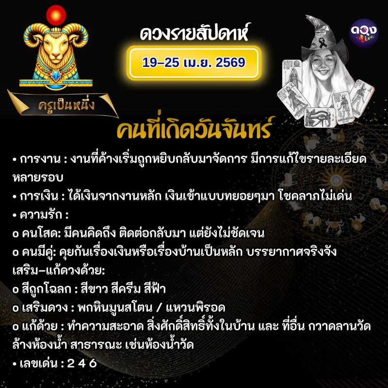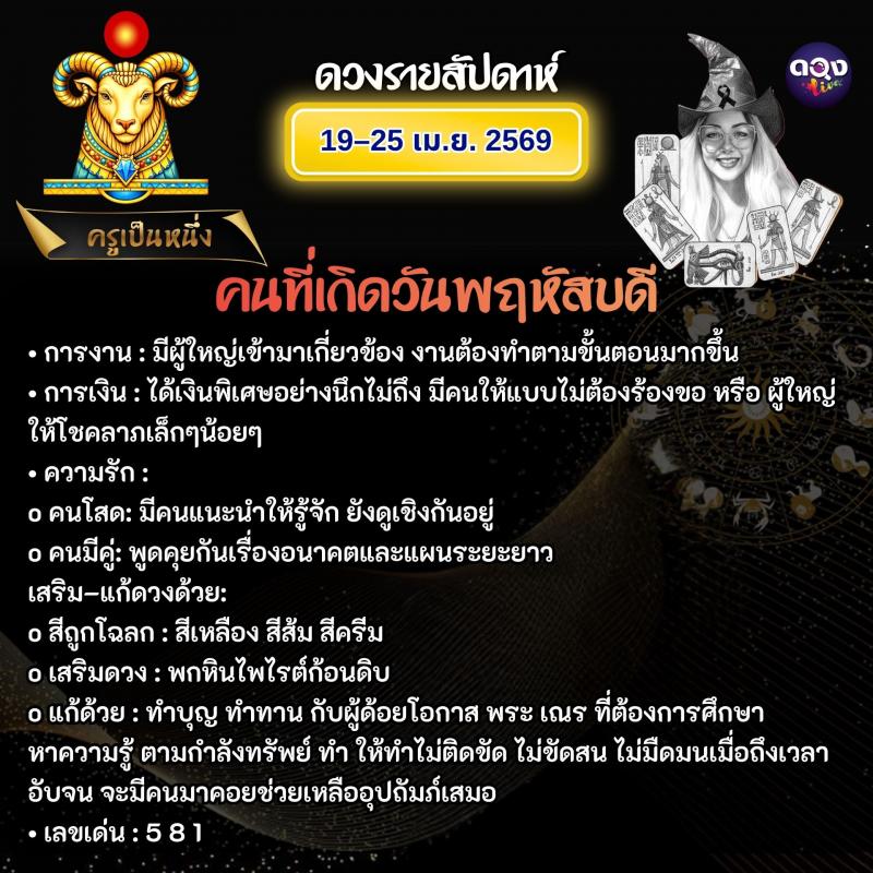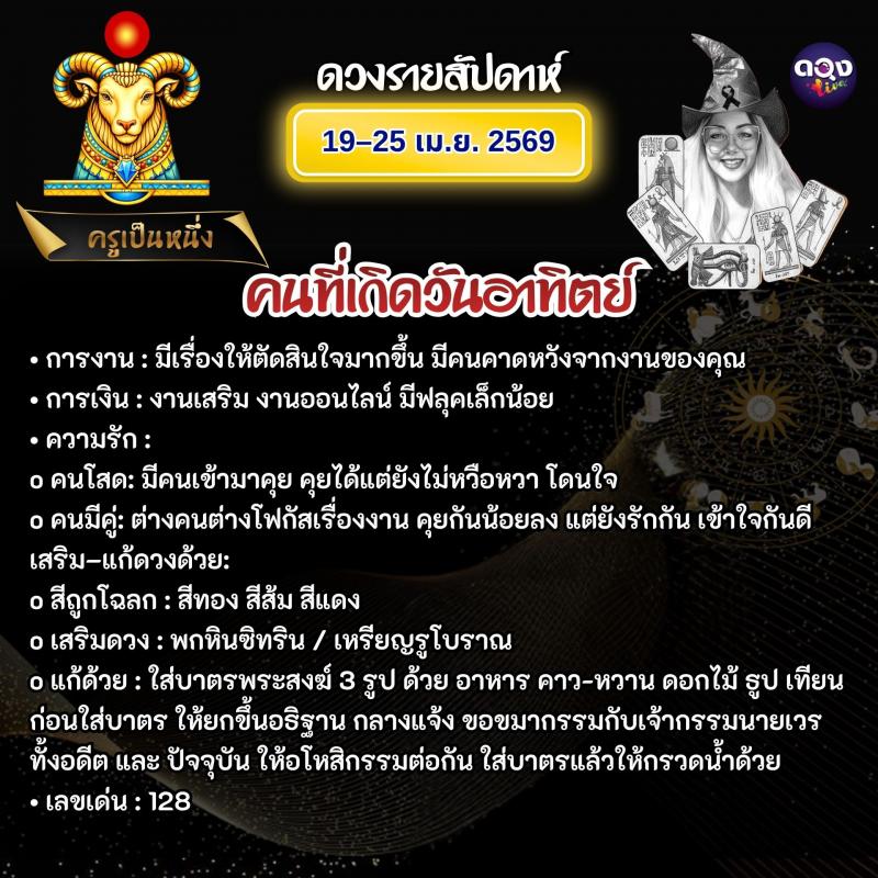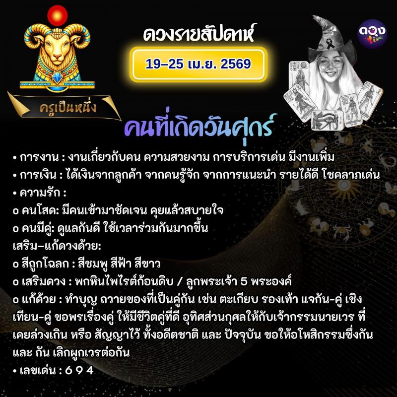 ดวงรายสัปดาห์ 19–25 เมษายน 2569 ทำนายโดย ครูเป็นหนึ่ง