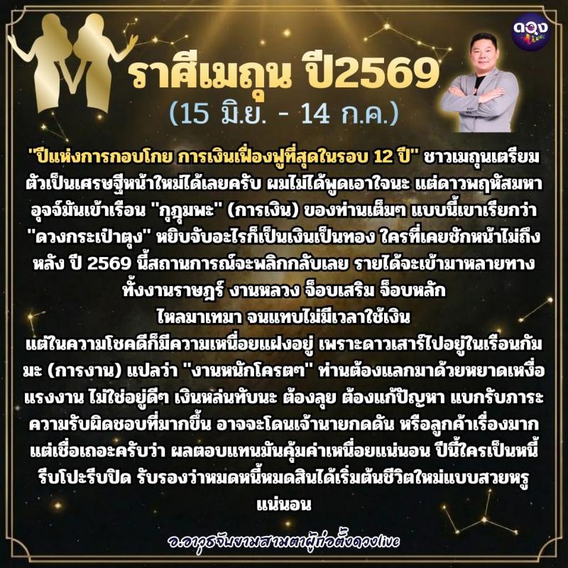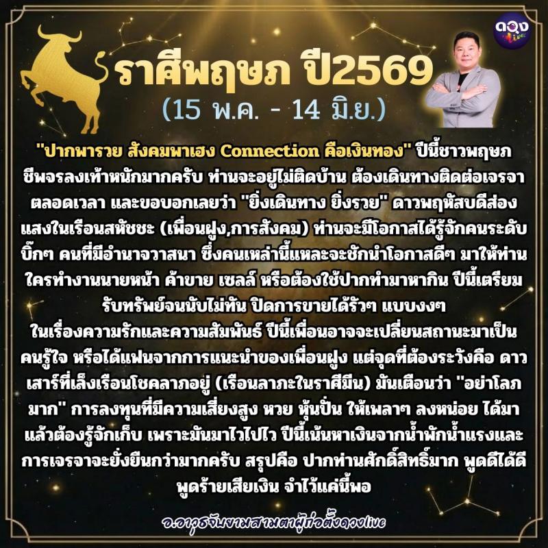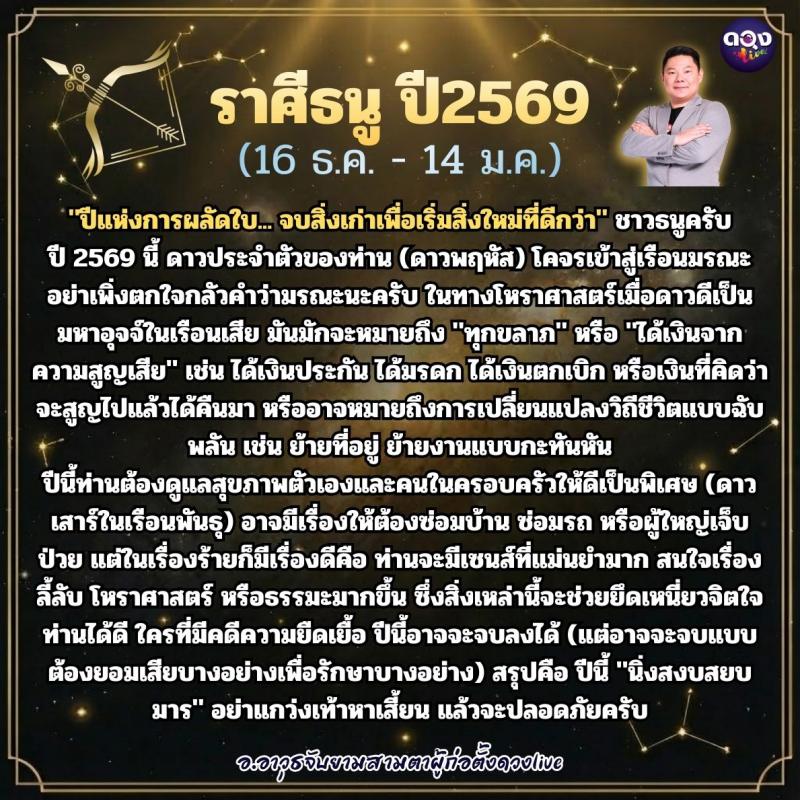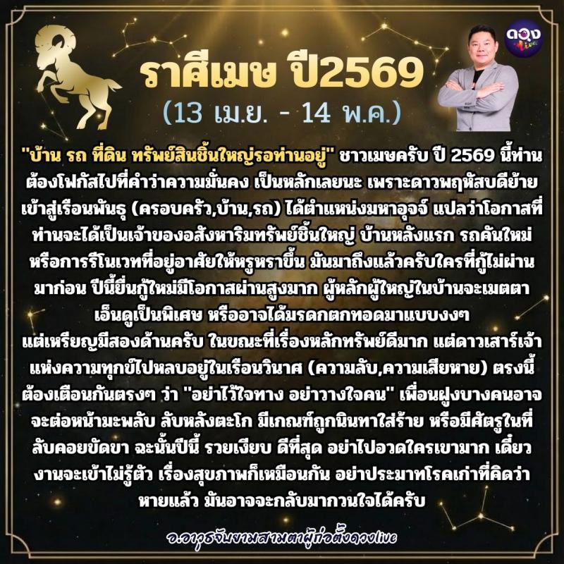 ดวงปี 2569 เจาะลึก 12 ราศี "ยุคดาวพฤหัสเป็นมหาอุจจ์" พลิกชีวิตจากร้ายกลายเป็นรวย โดย อ.อาวุธจับยามสามตา – ผู้ก่อตั้งดวง Live