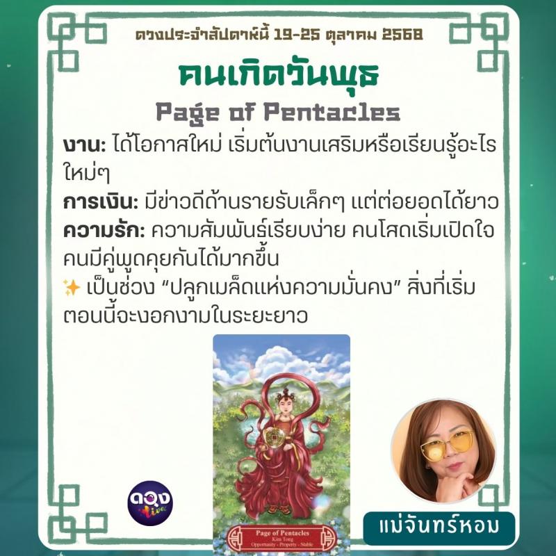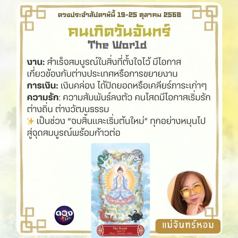 แม่จันทร์หอมขออัญเชิญพลังไพ่ศักดิ์สิทธิ์ Guanyindi Tarot เปิดพลังทิพย์เพื่อพยากรณ์ดวงรายวันเกิด ประจำวันที่ 19–25 ตุลาคม 2568